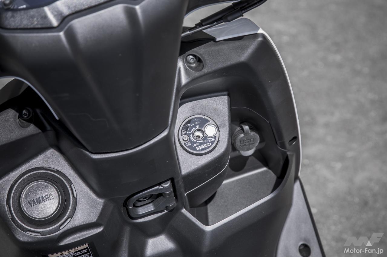 シグナスXと比較すると全体のスタイリングはシャキッとより洗練された印象。装備面ではほぼ同等で各部の仕上がり具合には順当な進化が感じられるも、基本キャラクターやグレード的にはキープコンセプトとした正常進化が成されているように思う。