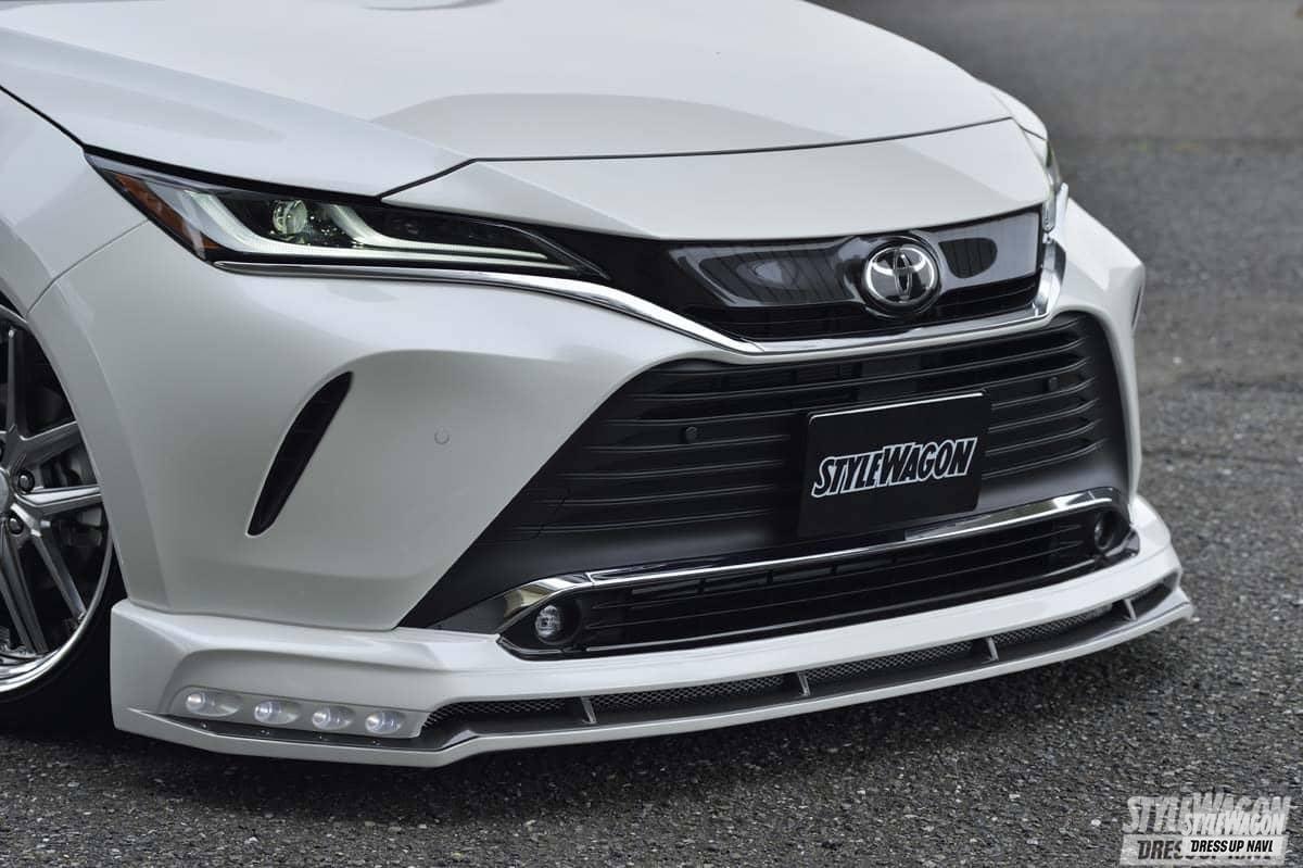 サイドの造形に合わせるように、前後にボリュームを持たせて存在感を高めたリチェルカート。80ハリアーの存在感も抜かりなし。