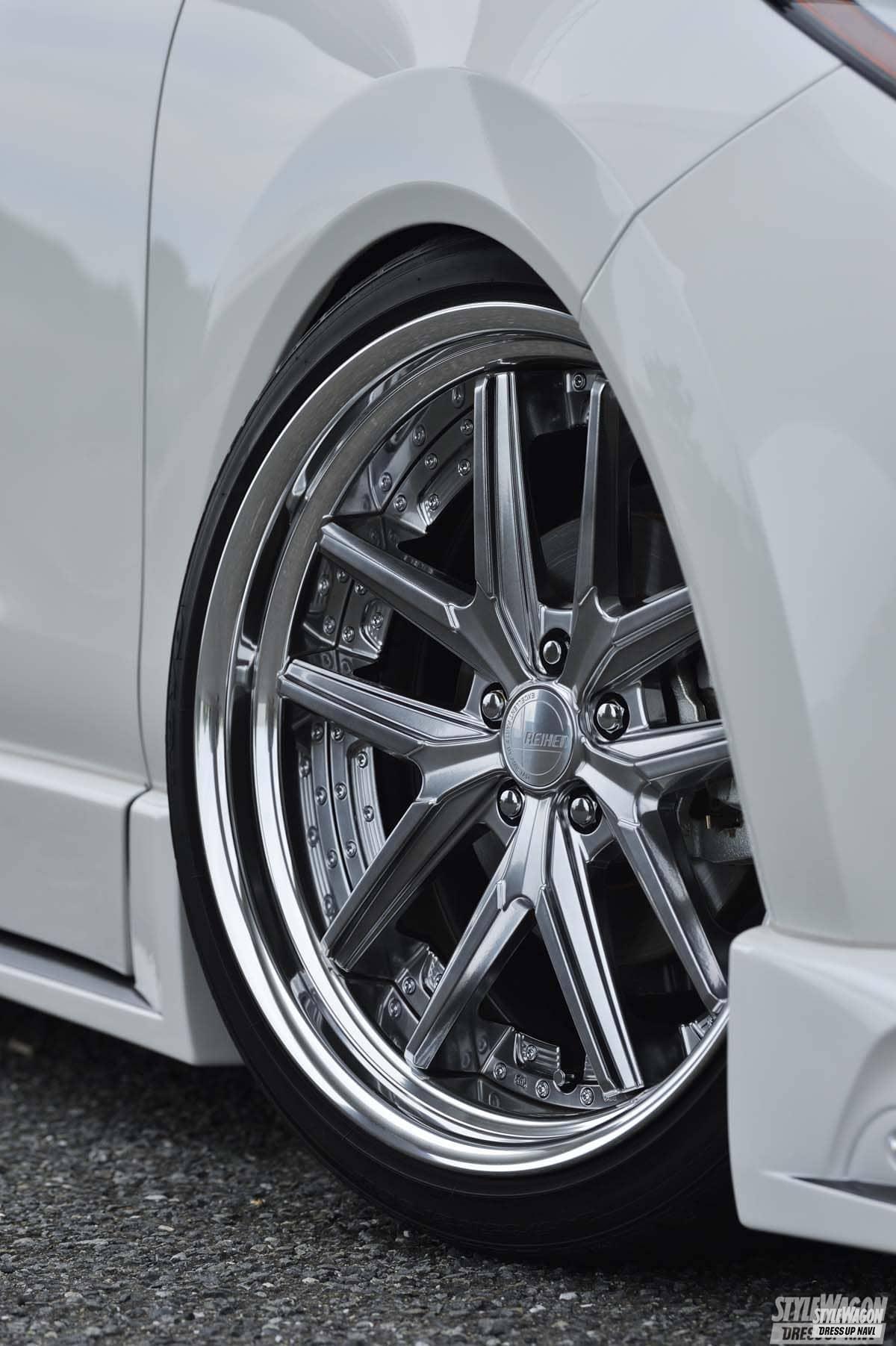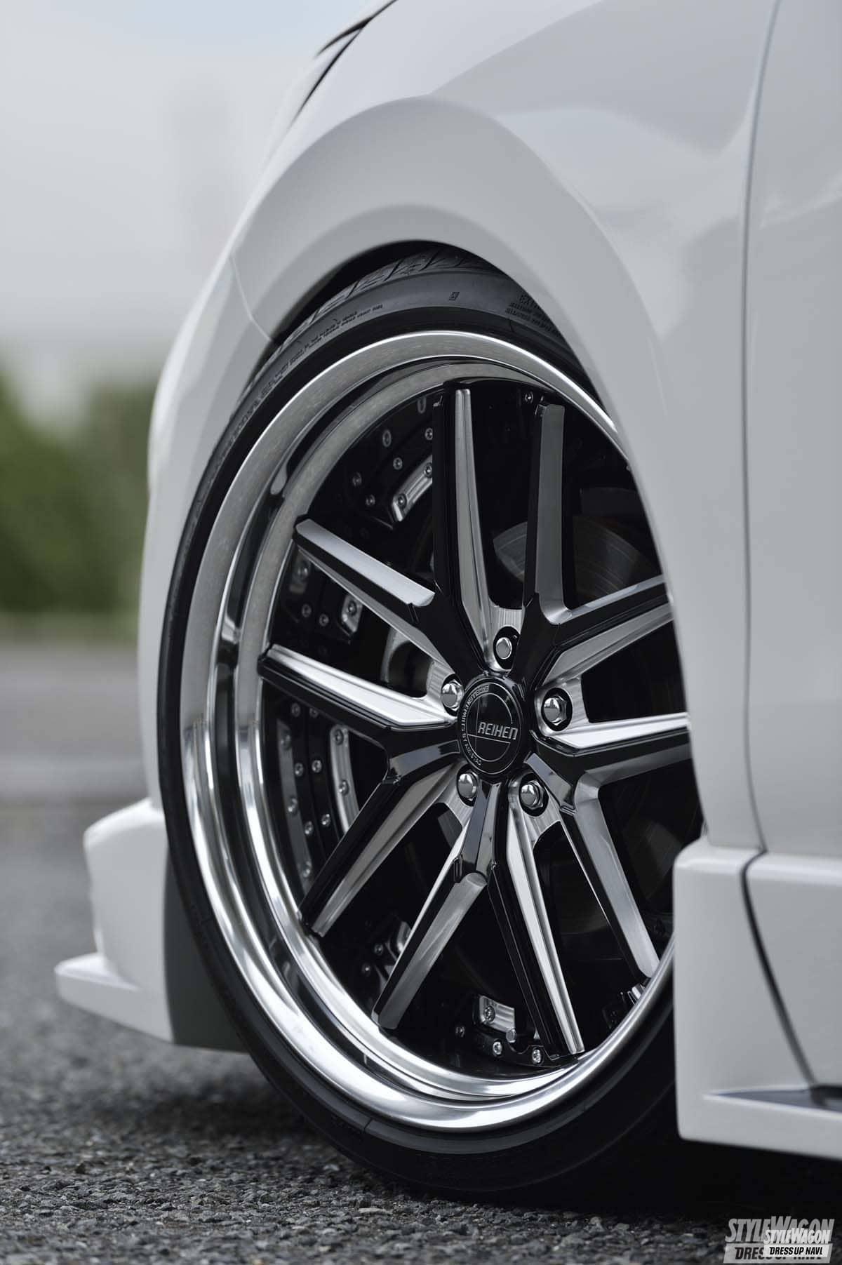 内と外のWピアスで知られるライエンシリーズ。デモカーは運転席側シャイニングシルバー、助手席側ブラックスクリットマシニングだ。