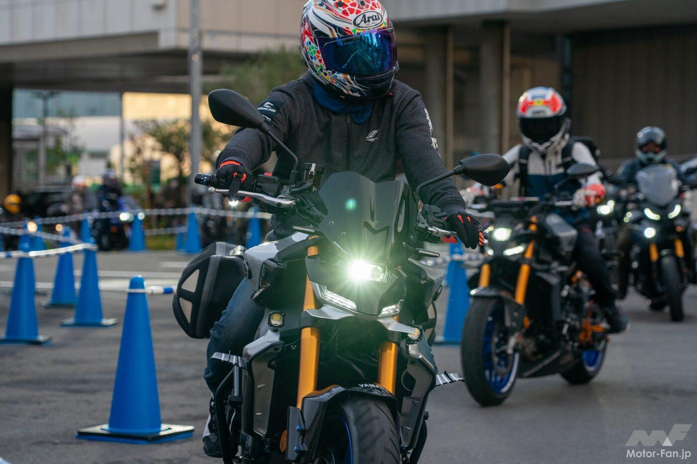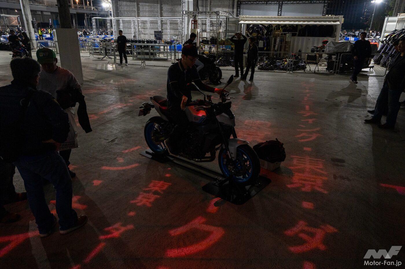 「The Dark side of Japan」とは、MTシリーズに込められたコンセプトの総称である。精悍なスタイリング、トルクフルな加速、そして夜の街に溶け込むダークな存在感。これらの要素を再現する場として、ナイトミーティングは最適な演出効果を発揮した。