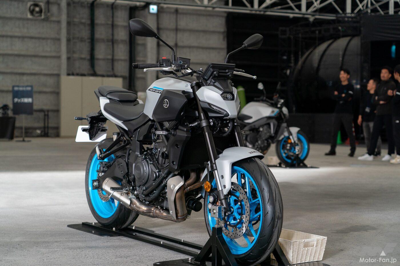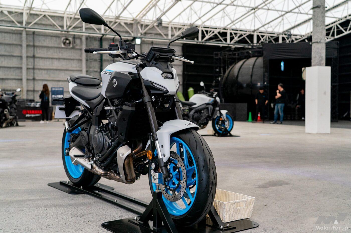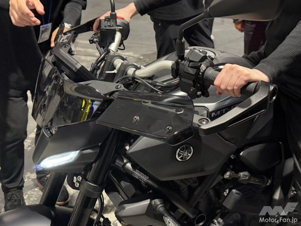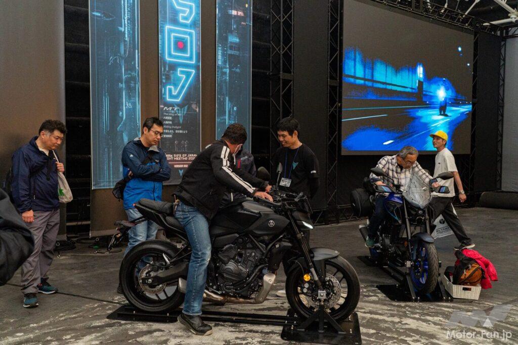 注目の展示車両は、2025年2月に国内導入されたばかりの新型「MT-07」およびそのクラッチレス仕様「MT-07 Y-AMT」だ。両モデルともに先進的なLEDヘッドランプとシャープなシルエットを備え、既存のラインアップとの差異を明確にしている。