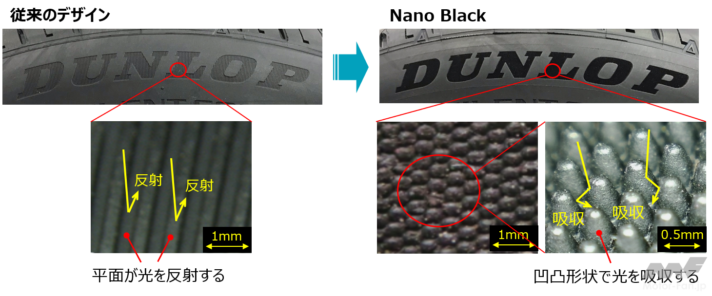 この技術によって、サイドウォールのブランドロゴや商品名などの視認性を向上させるとともに、デザイン性を高めることで高級感を創出し、さらに顧客に選んでもらえるタイヤづくりを目指す。住友ゴムグループのパーパスである「未来をひらくイノベーションで最高の安心とヨロコビをつくる。」の下、さらなるタイヤの性能向上はもちろんのこと、多くのユーザーの所有する喜びも追求していく。