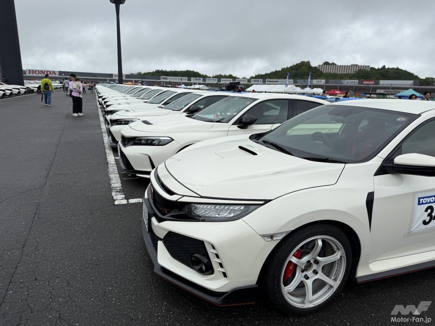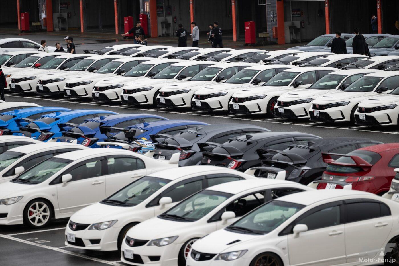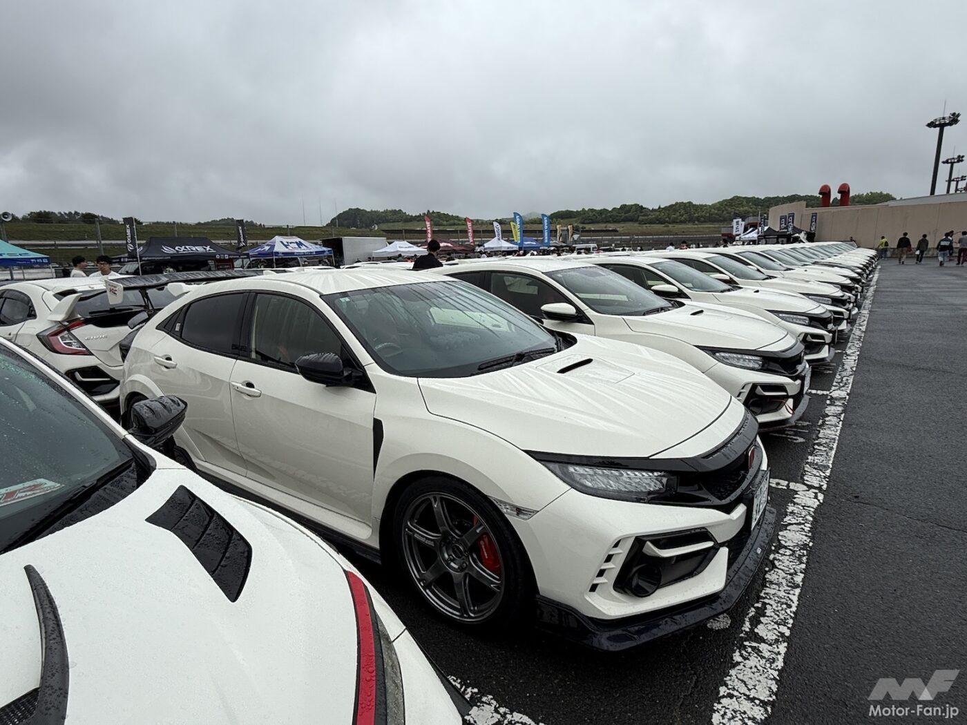 もっとも参加台数が多かったのは、現行シビックTYPE R(FL5)で約300台。カラー別に並べられた様子は圧巻だった。