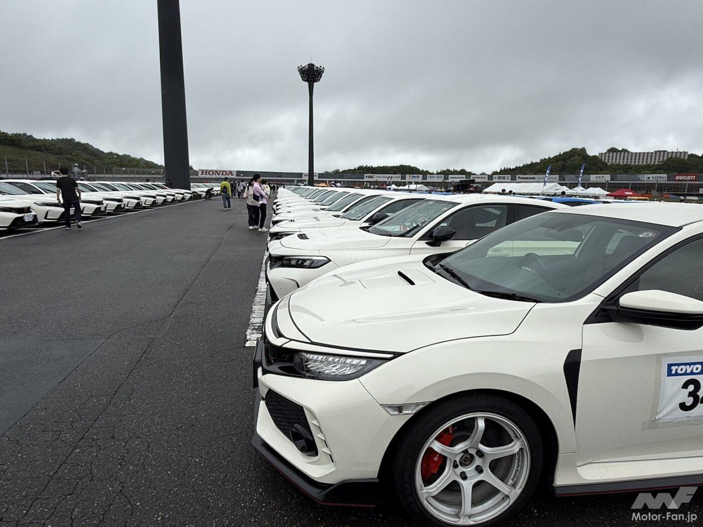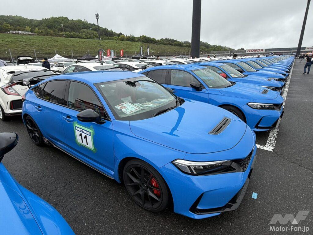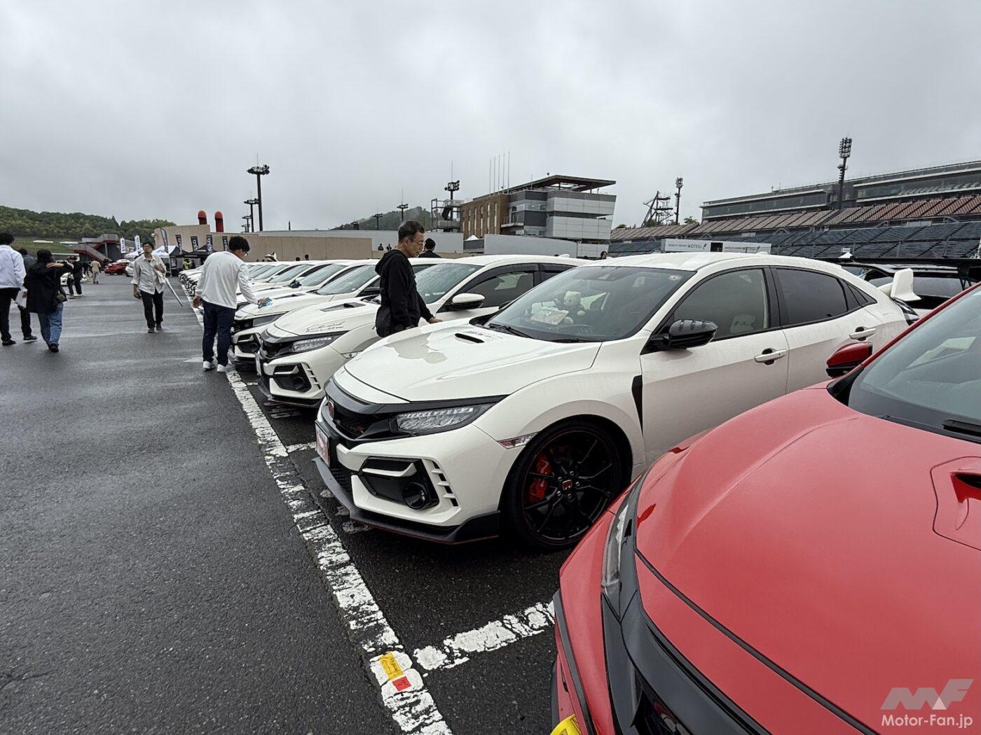 もっとも参加台数が多かったのは、現行シビックTYPE R(FL5)で約300台。カラー別に並べられた様子は圧巻だった。