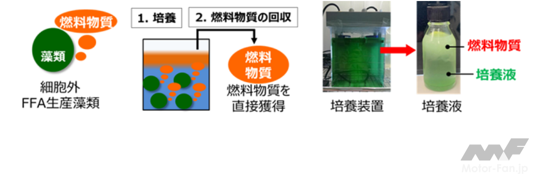 今回作製された藻類の特長として、外来遺伝子を含まない非組み換え生物であることに加え、FFA生産能力の強化と生産されたFFAを速やかに細胞外に放出させる機能の向上により、燃料物質であるFFAを容易に回収できることが挙げられている。また、培養した藻類を継続的に燃料生産に活用できるため、工業利用時の製造や運用に係るコストなどの軽減が期待されている。