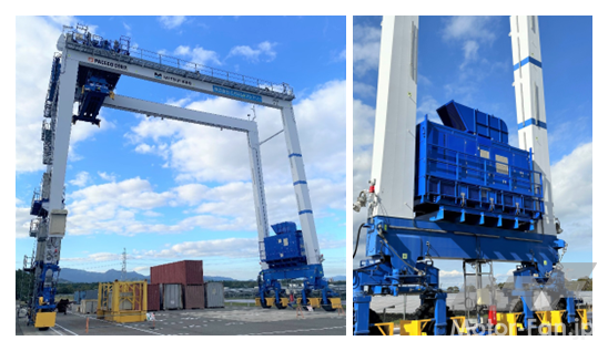 今回開発されたFCパワーパックを搭載したRTGCを検証するため、荷役実証試験が行われた。実証は三井E&Sの大分工場(大分県大分市)で、三井E&Sが所有する試験用RTGCにFCパワーパックを含む機器を搭載し、実際のコンテナターミナルでの荷役を模した試験が行われた。実証では、クレーンの動作やFCパワーパックの熱マネジメント、冷却システムの成立性、水素消費量、FCパワーパックと畜電池とのエネルギーマネジメントなどが検証された。結果、全ての検証において、実作業に適用可能なことが確認された。