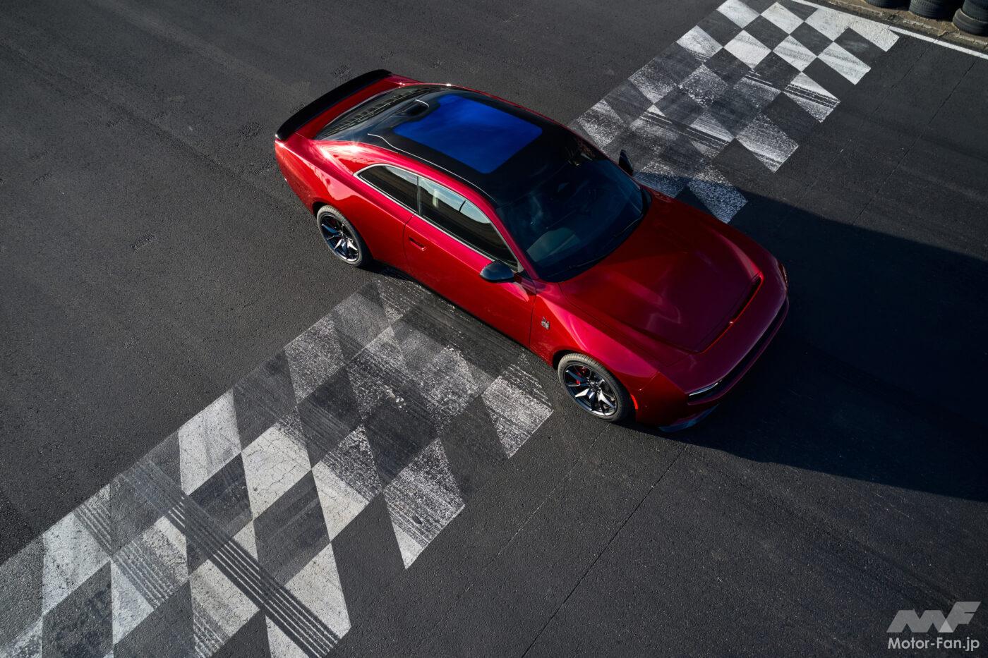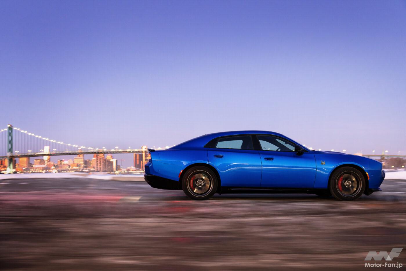 4ドア/2ドアのチャージャー・デイトナ・スキャットパックモデルは、670馬力のポテンシャルを誇る。このモデルは、世界最速で最もパワフルなマッスルカーとして、ヘルキャット・レデイエ並みの性能を発揮し、0-96km/h加速をわずか3.3秒で達成する。その駆動システムには、全輪駆動(AWD)、後輪機械式リミテッドスリップディファレンシャル、最大航続距離241マイル(≒387km)、フル電動400Vデュアルモーターシステムを搭載する。