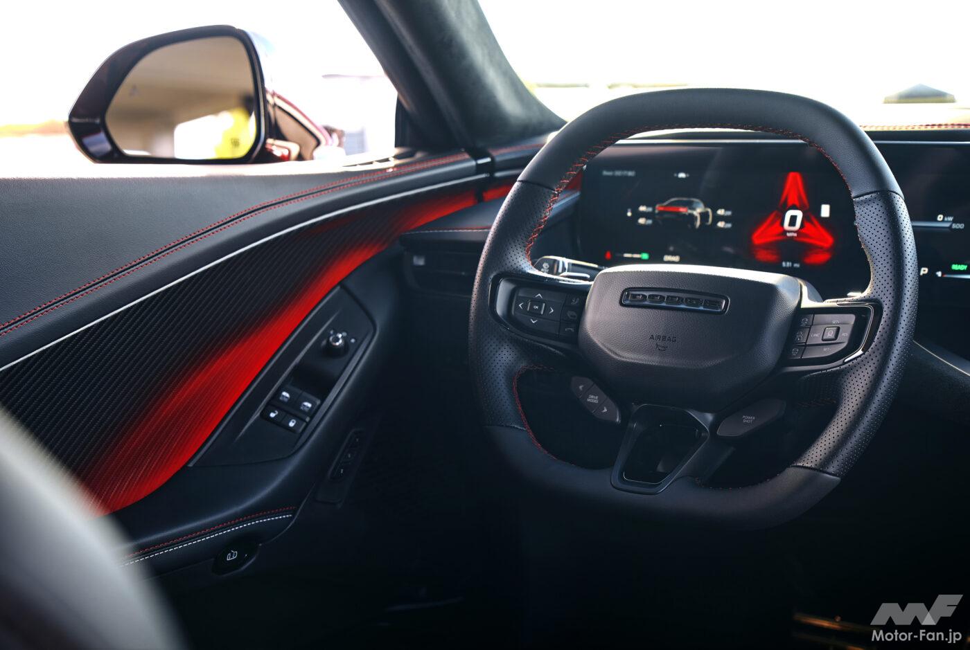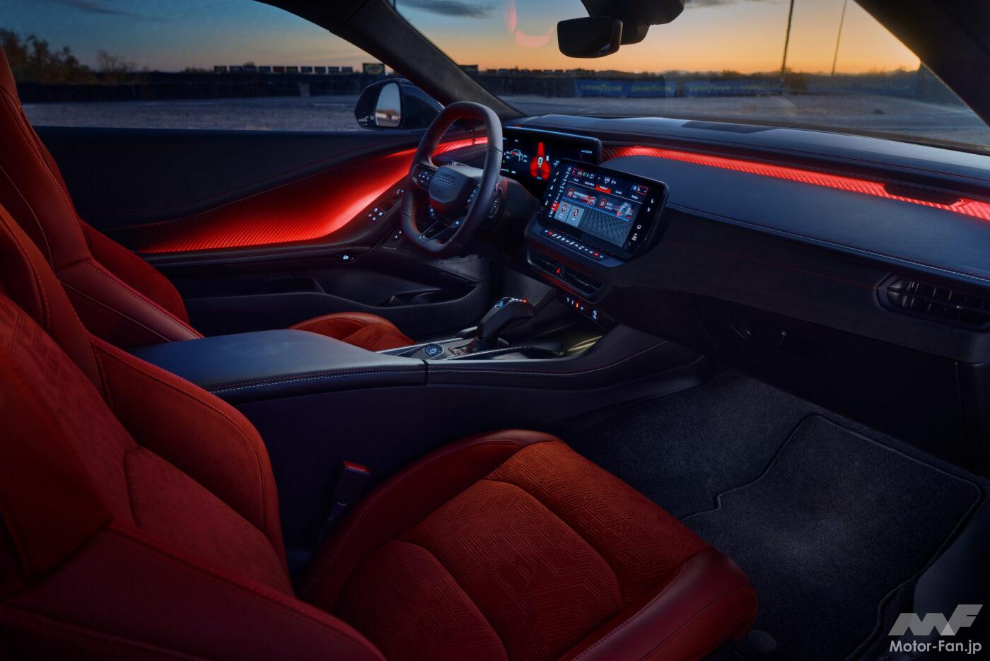 ドライバー重視のインテリアには、標準装備の16インチクラスターディスプレイと12.3インチUconnect 5ラジオを搭載。ワイヤレスAndroid Audio、Apple CarPlay、Amazon Alexa対応。標準装備のピストルグリップシフト、9スピーカーアルパインオーディオ(サブウーファー付き)、デュアルゾーン自動温度制御、キーレスゴー(プッシュボタンとリモートスタート対応)。
