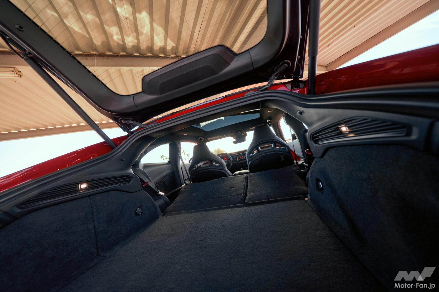 複数のドライブモード(スポーツ、トラック、ドラッグ、カスタム)、レースオプション(ドリフト/ドーナツモード、ローンチコントロールなど)だけでなく、特許出願中の「Fratzonic Chambered Exhaust」も標準装備される。これは、アクセルに連動した音の強度で排気音を発生させ、車内の没入感を高めるものだ。同じく特許出願中のフロントR-Wingパススルーは、アグレッシブなスタイリングを強調しつつ空力性能を向上させる。標準装備される「Power Shot」システムは、ドラッグレース時に10秒間40馬力の追加出力を発生させることができる。