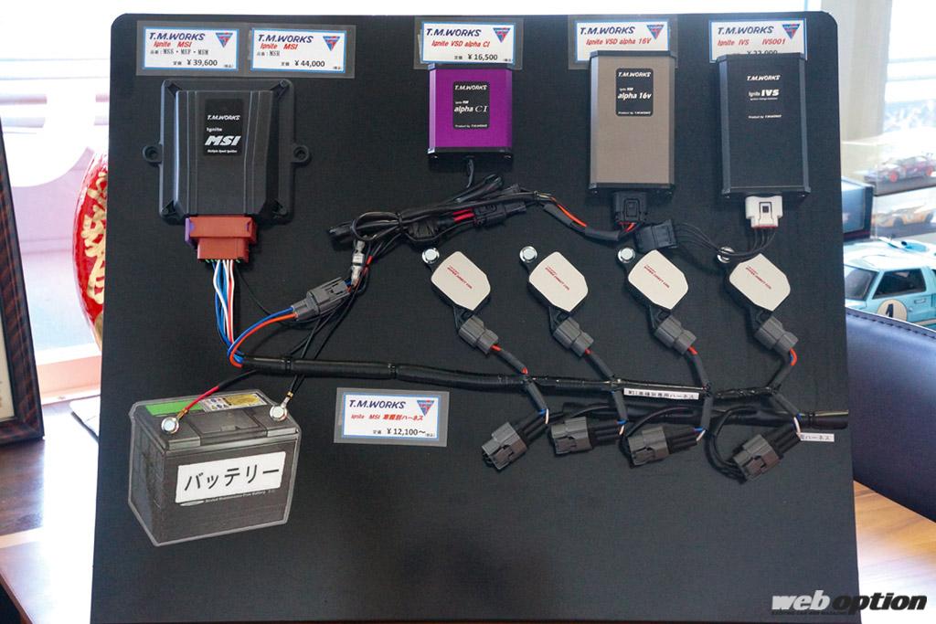 なお、点火系パーツを得意とするTMワークスだけに、ダイレクトイグニッション化後のシステムアップグレードに対応していることも見逃せない。コイルへの入力電圧を16Vに昇圧する「VSD アルファ 16V」や、低回転域で3回、中回転域で2回とマルチプル点火を可能にする「MSI」など、多彩な製品がラインナップされているのだ。