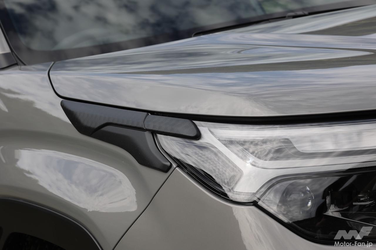 ルーフエッジプロテクターにも溝が設けられている。撮影車はスーリー(Thule)のテントを載せていたが、サイクルキャリアも純正用品として用意されている。ルーフエッジプロテクターの溝はロックの解施錠をする際のキーや、六角レンチなどの工具の仮置き場として使うのに便利、というわけだ。