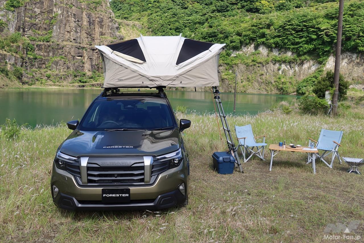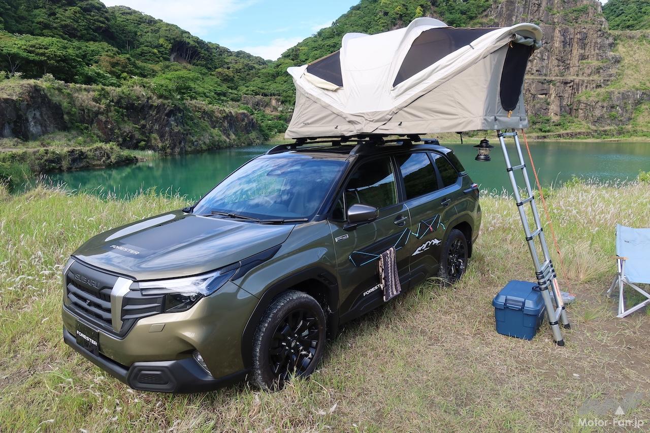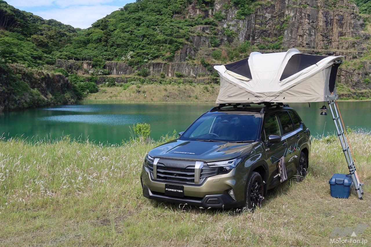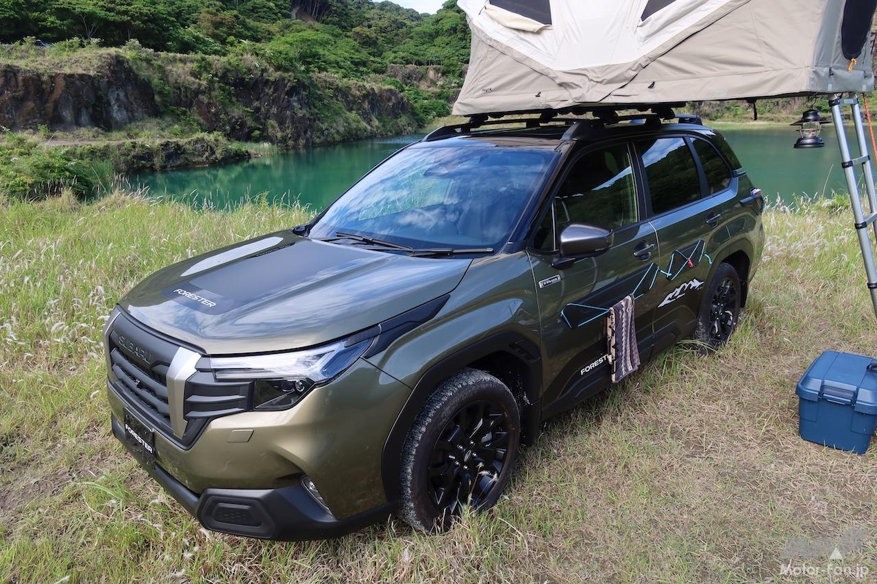 新型スバル・フォレスターには、主にレジャーシーンでの使い勝手を向上させる多彩なアクセサリーが設定されている。メディア向け試乗会場に展示されていたアドベンチャースタイル装着車を題材に、各種アクセサリーを見ていこう。