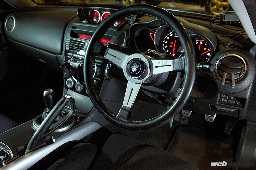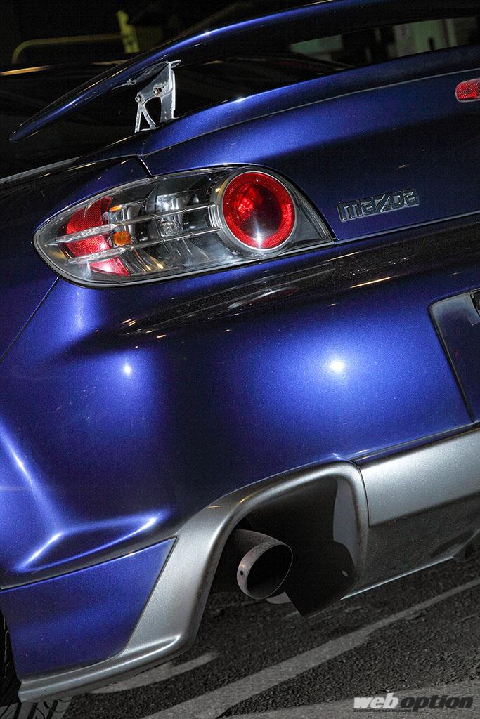 かつてOPTION誌の最高速企画にて246.8km/hをマークしたFD2シビックタイプRの記事を読み、「同じNA・2.0Lクラスで負けるわけにはいかない!」と自らもその企画に挑戦。このRX-8は、その際に256.6km/h(V-BOX計測)という数値を叩き出したド根性チューンドだ。