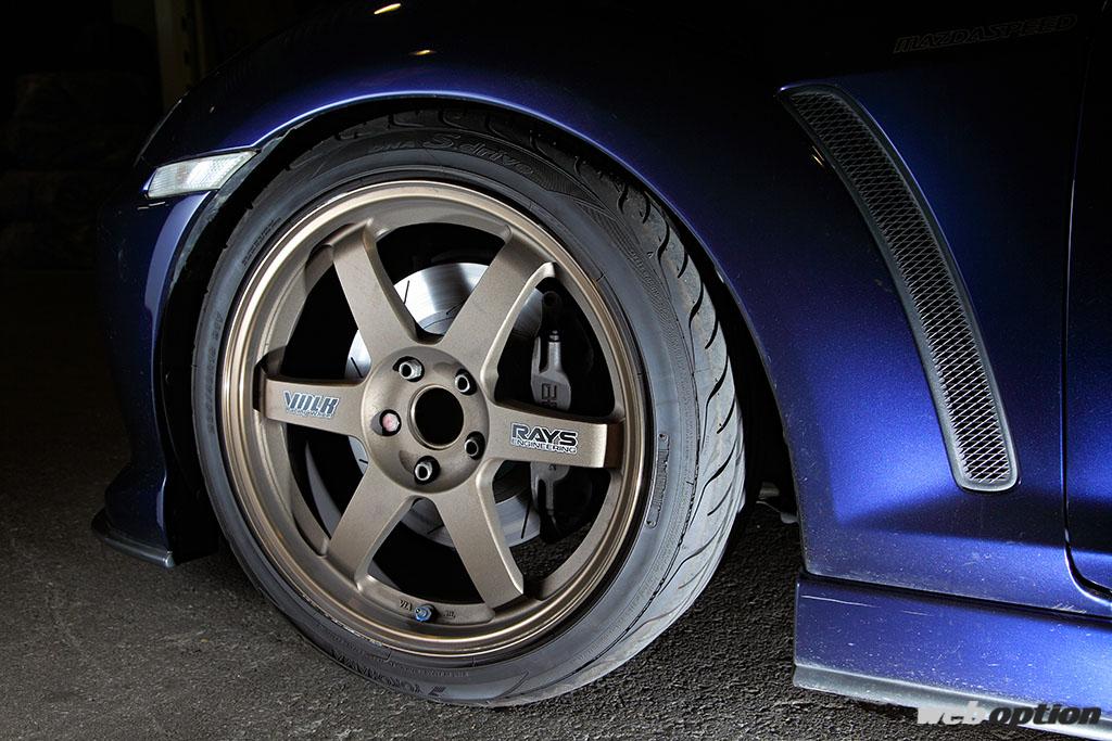 グレードがマツダスピードバージョンということから、エクステリアはストック状態。ただしボンネットだけはクーリング性能を引き上げるべくRE雨宮のADフードD1へと変更済みだ。