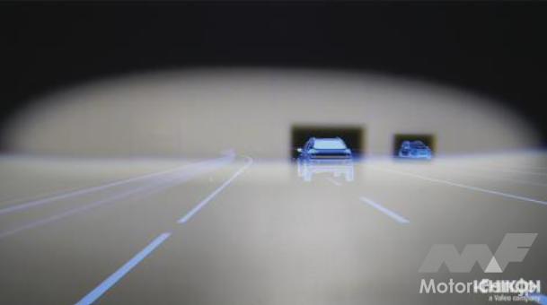 ロービーム領域ではレーンガイドやナビゲーション表示を路面に投射することによる運転サポートや、車両の前方を横断する歩行者の足元を強調し発見しやすくするといった安全性の向上に効果的だ。