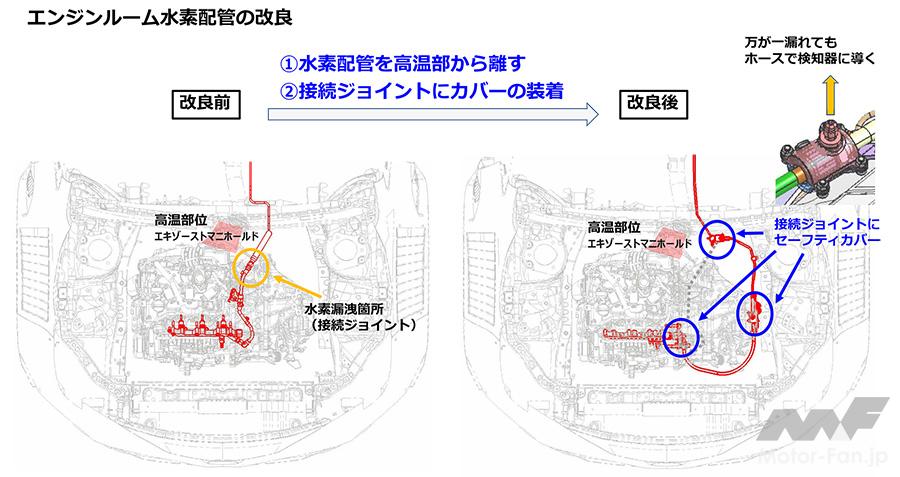 また、燃料が気体水素から液体水素に変わることに伴い、車両の燃料供給装置も液体水素向けに変更されている。エンジン自体は、気体水素を搭載していた時と同様のものが使用されている。液体水素に燃料を変更することで体積当たりのエネルギー密度が上がるため、満充填からの航続距離は約2倍、充填時間は、これまでと同じ約1分半※2が実現さrている。今後、年間を通じて、エンジン性能・航続距離・充填時間の改善が推進される。