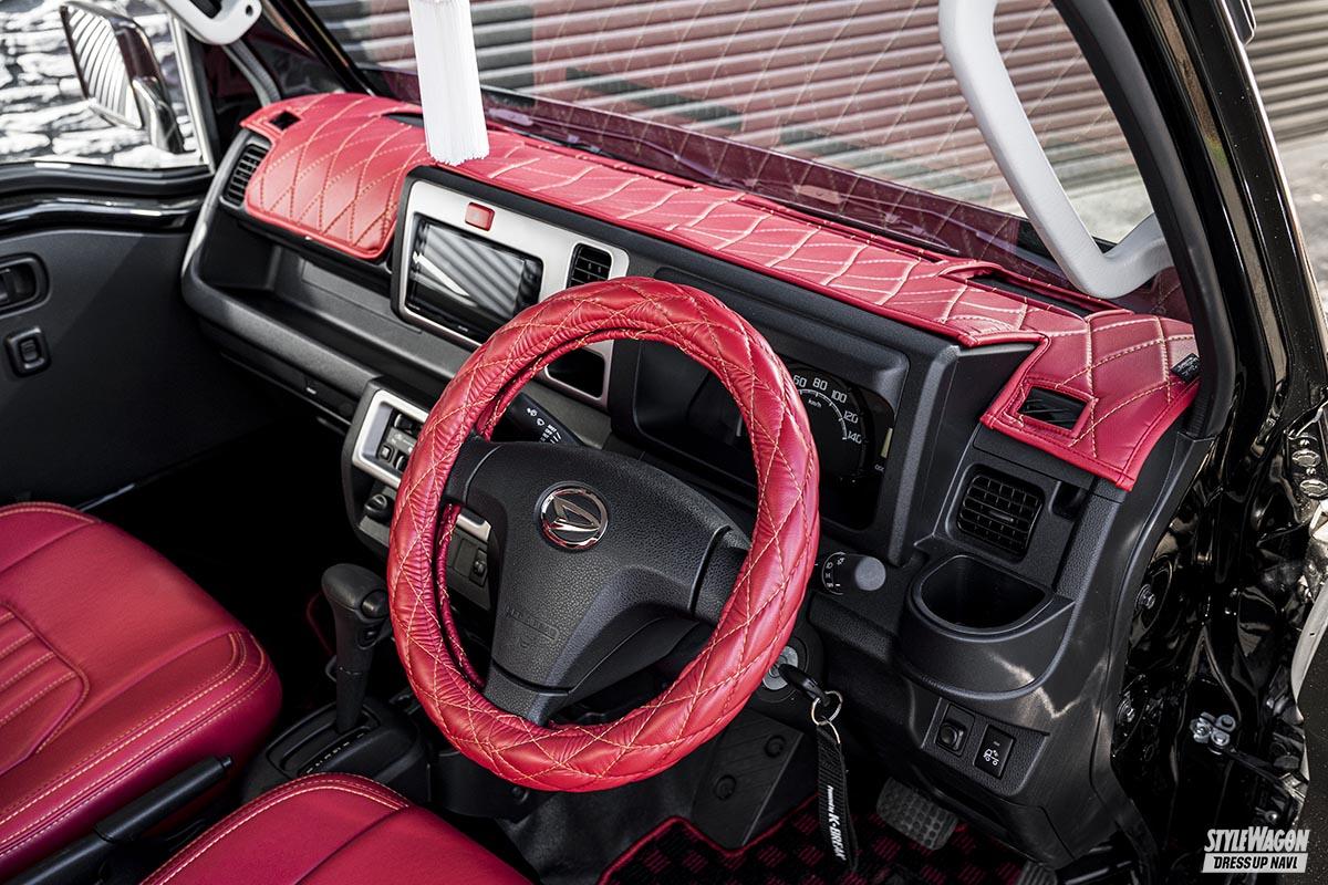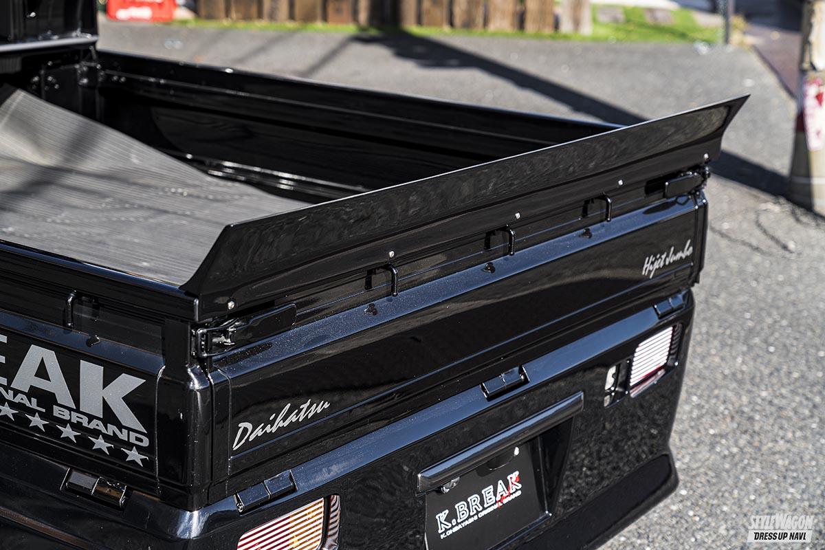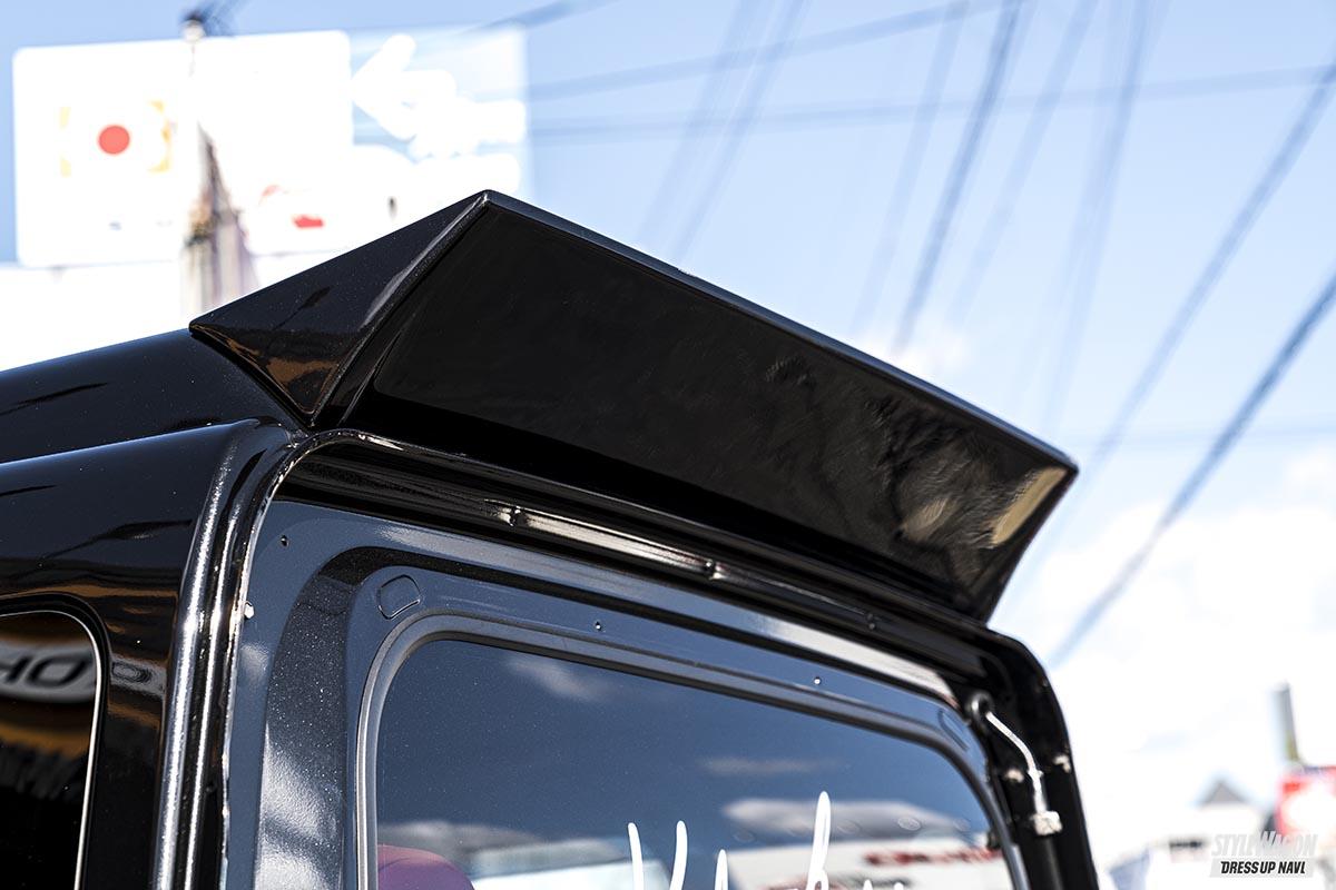 エアロパーツ 軽トラドレスアップの原点回帰! ワイド&ローで打ち出す重厚なVIPスタイルが圧巻【軽トラカスタムがいま面白い!】【写真・7枚目】 純正のワイパーを隠し、見た目をスッキリと見せるワイパーガード。ゴチャゴチャ感がなくなるオススメ商品。 勢い良く反り上げたルーフウイングは、エアロとの相性もバツグン。視覚的にキャビンを長く見せてくれる。 後方のあおりに付けるリアウイングも用意。エアロにも負けないボリューム感と、絶妙な反り具合で魅了する。 往年のVIPを彷彿とさせる、エアロ専用のハネ上げ&ハス切りマフラー。デモカーはインナーを赤でペイント。 この画像の記事を読む