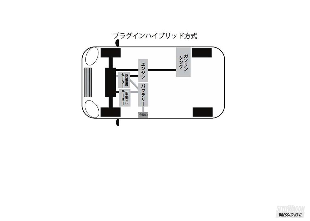 プラグインとは、「差し込む」という意味。充電器からクルマに充電する行為や技術的なシステムを指す。つまり、プラグインハイブリッドとは外部充電が可能なハイブリッドのこと。一方、例えばプリウスPHVのように、外部充電システムがない普通のハイブリッドとは技術的な違いのみならず、宣伝広告などについても違うスタンスをとっています。価格面でもプラグインハイブリッドはハイブリッドよりかなり高い設定になっています。