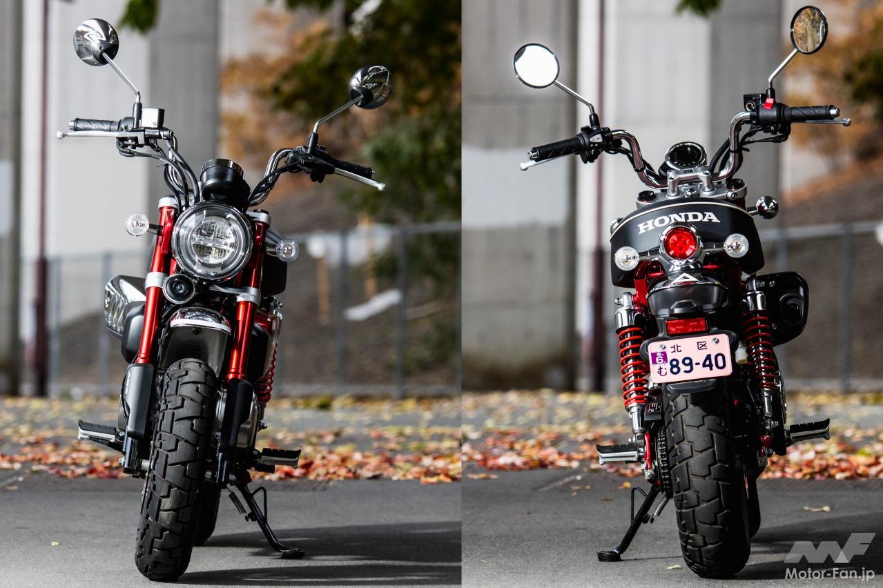 サスペンションはソフトでふわつき感があるものの、腰砕けにはならず、しっかり走りを支えてくれます。峠のハードコーナリングには向きませんが、乗り心地はよく、幹線道路から狭い路地、ダートの空き地まで、オールマイティに楽しめるモンキーらしい足まわりです。