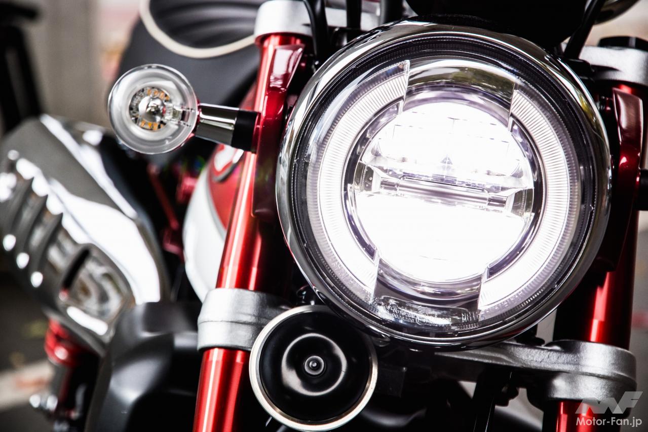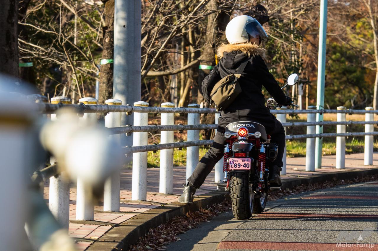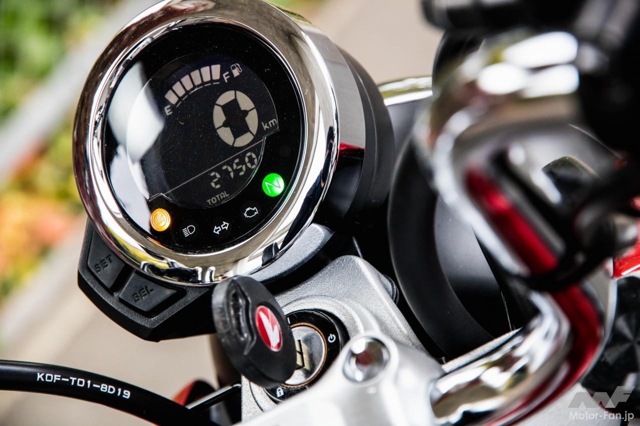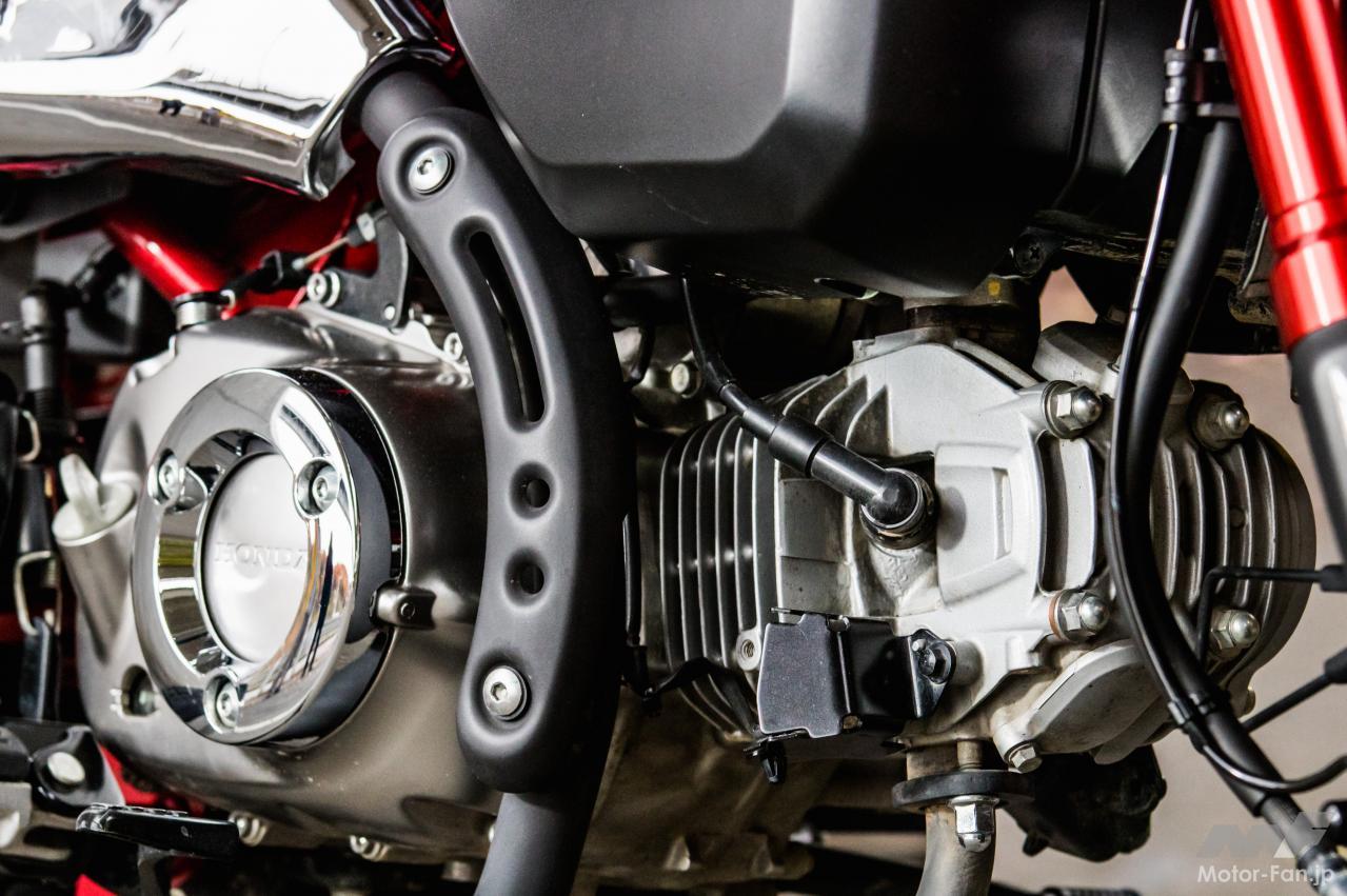 また細身のフューエルタンクは、よほど意識してニーグリップしないと膝が当たらないため、いっそう車体を小さく感じさせる効果があるようです。こんなところにも50ccモンキーの乗り味を残す工夫が感じられますね。