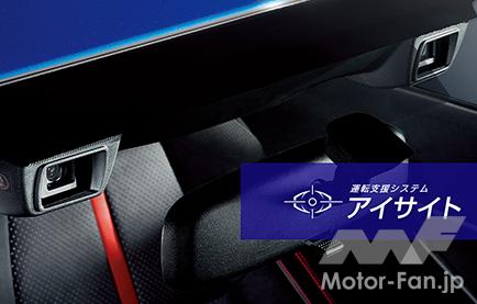 今回SUBARU BRZ改良モデル(日本仕様車)に採用されるMT車向けアイサイトは、SUBARU BRZのオートマチックトランスミッション車向けのアイサイトをベースに、プリクラッシュブレーキや追従機能付きクルーズコントロール、車線逸脱・ふらつき警報機能、先行車発進お知らせ機能、後方ソナー警報機能のクリアランスソナーを装備。アイサイトの高い衝突回避、衝突被害軽減、運転負荷軽減の各性能へMT車の特性に合わせた制御を施し、リアルワールドの幅広いシーンでの安定した動作を実現、運転する愉しさと安心が高い次元で両立されている。
