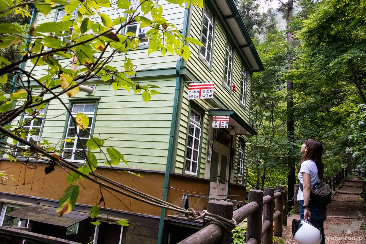 払沢の滝への道は、水根本宿線にある駐車場から徒歩15分のちょっとしたハイキングコースです。ハイヒールではためらうほどの未舗装の道も、ライディング・シューズで足元を固めたライダーならへっちゃら。さわやかな山の空気を楽しみながらのんびり行きましょう。