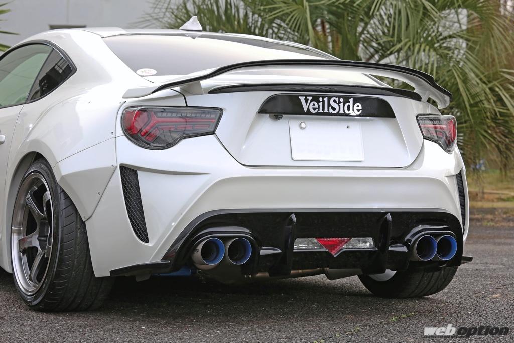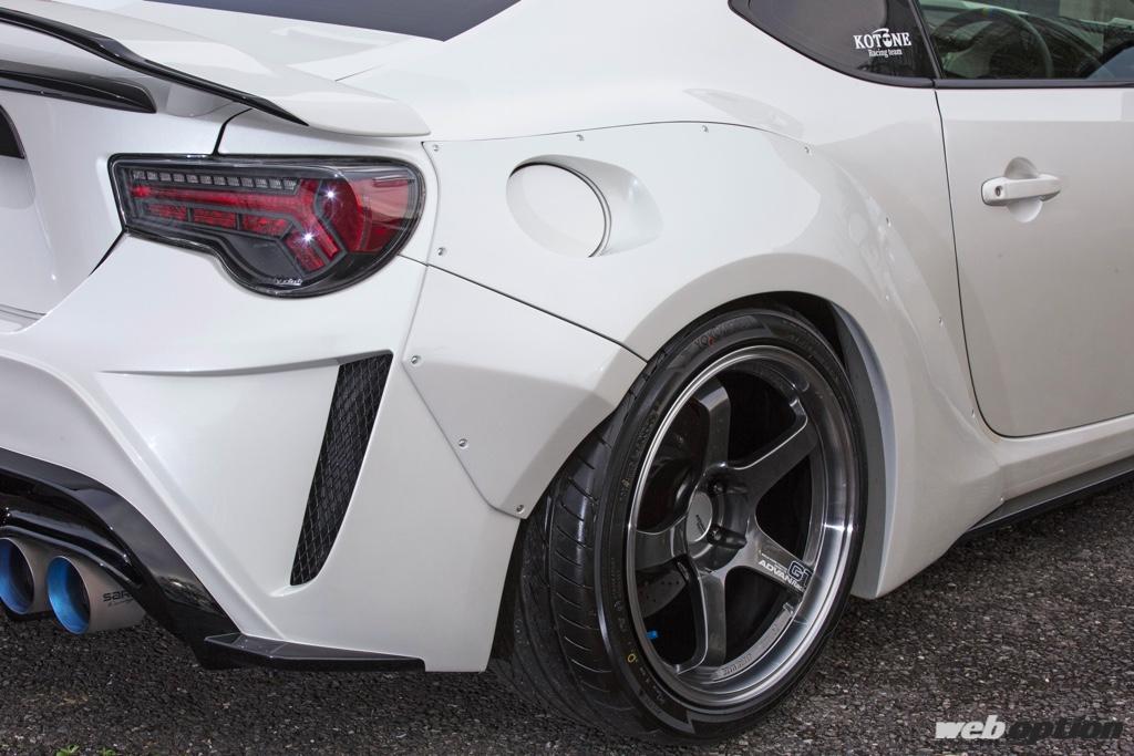 圧倒的な存在感を醸し出すオーバーフェンダー仕様のZN6型86。エクステリアを覆うエアロパーツは、アクション映画『ワイルドスピード』に登場する劇中車を数多く手掛けたことでも有名な“ヴェイルサイド”の野心作だ。
