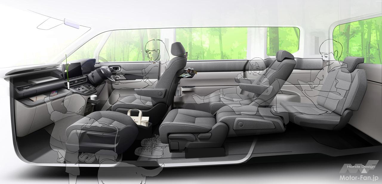 ホンダは、新型ステップワゴンで、エクステリアをシンプルでクリーンなデザインとすることで、家族それぞれのライフスタイルを素敵に引き立てる存在となることを目指した。インテリアは、どの席からも開放感のある視界が得られることで、爽快で居心地の良い空間を実現した。