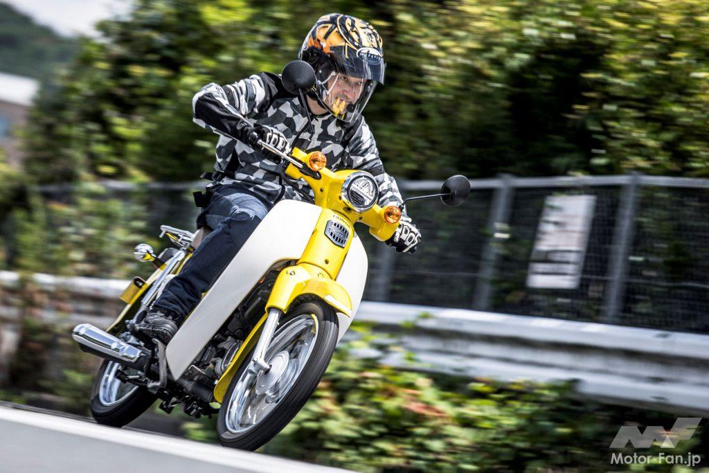 シリーズ最上位として2018年にスーパーカブC125が登場した際、想像以上に上品かつ上質な走りに驚いたものの、その一方で「これは本当にスーパーカブなのだろうか」などと思ったのも事実。対してこのスーパーカブ110は、C125と比べるとエンジンフィーリングは牧歌的であり、耳に届くメカノイズも大きめ。とはいえ、それらは私が思う〝スーパーカブらしさ〟であり、価格を含めたパッケージングとしてのまとまりは絶妙だ。付け加えると、CT125・ハンターカブとクロスカブ110を比較試乗した際にも同じことを感じており、「自分買うならクロスカブだな」という結論に達している。