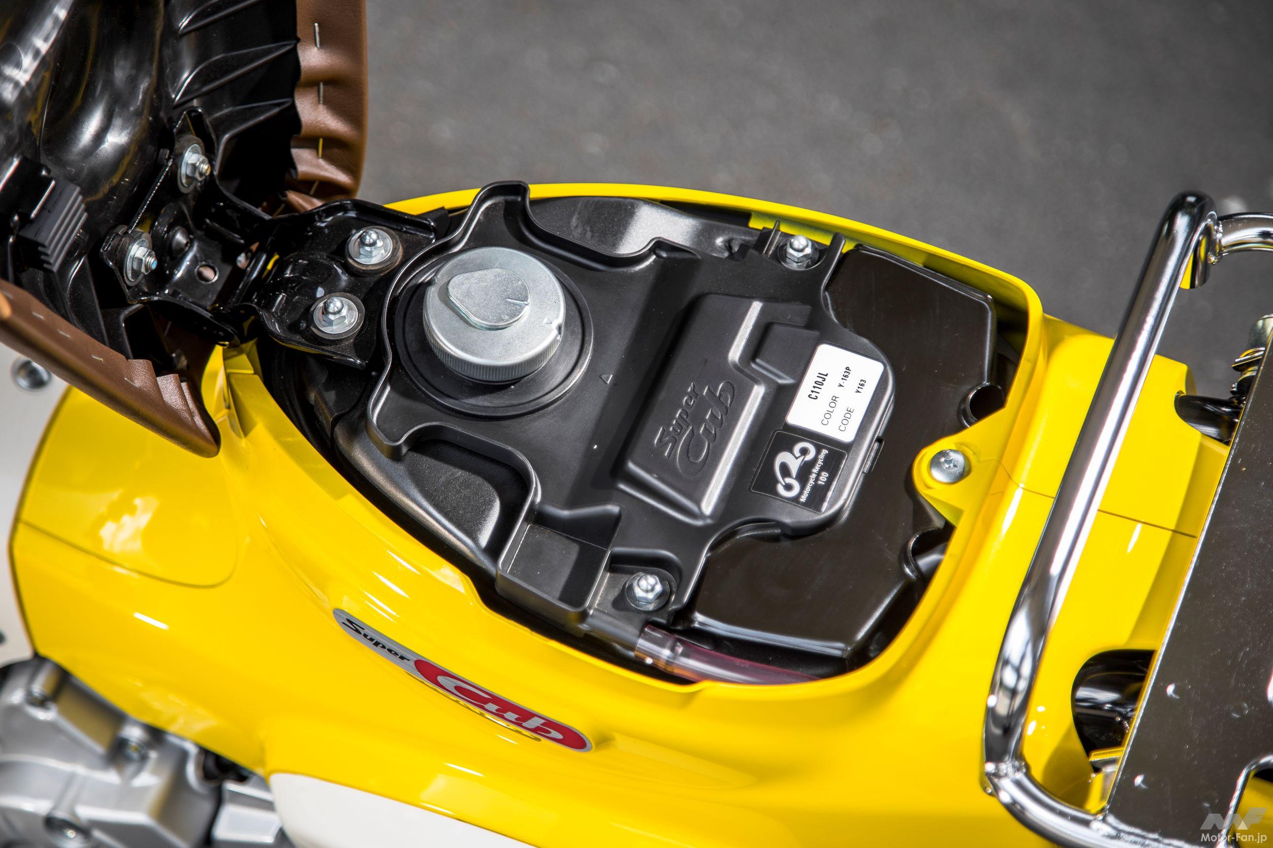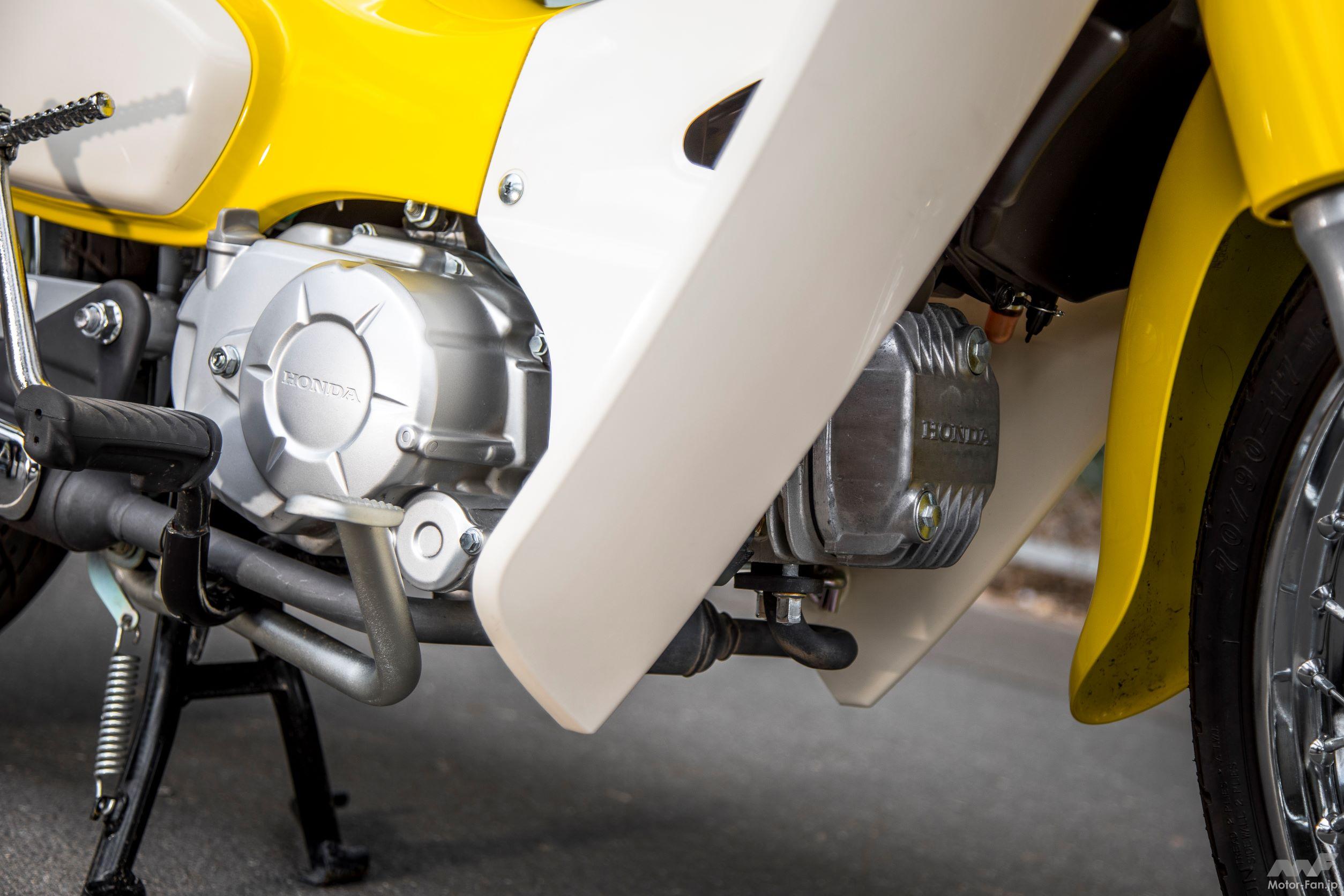 2009年に誕生したスーパーカブ110。フレームは伝統のバックボーン+プレスモノコックから新設計のバックボーンになったのをはじめ、スイングアームは同じくプレスのモナカタイプから四角断面パイプに。また、特徴的なフロントのボトムリンクサスは一般的なテレスコピックフォークとなった。これら大刷新されたシャシーは、2012年のモデルチェンジの際に剛性が見直され、2017年のモデルチェンジ以降もそのまま引き継がれている。エンジンは109ccの空冷SOHC2バルブ単気筒で、タイホンダのスーパーカブやウェイブシリーズで実績のある2段クラッチを採用。最高出力は8.0ps/7,500rpmを公称する。