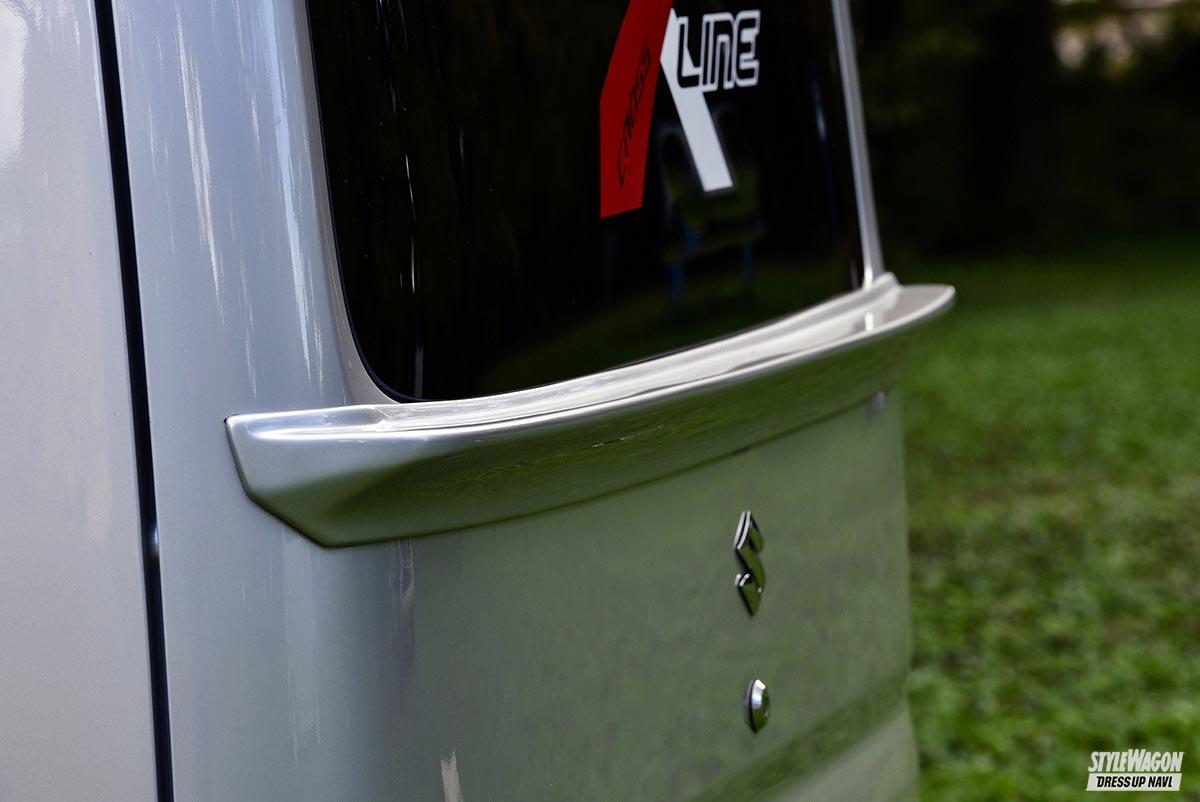 リアまわりのポイントは、リアルーフスポイラーとテールゲートスポイラー。ノーマルだとちょっとのっぺりとした感じのリアゲートに立体感が備わり、他と大きく違いを出せる。