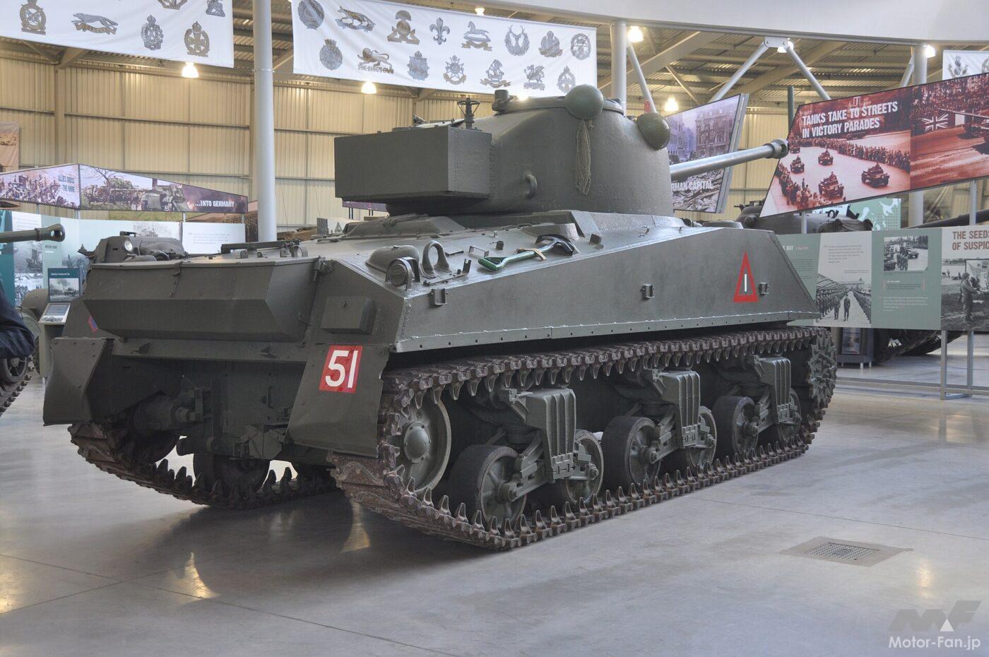 第二次世界大戦時に登場したアメリカ製の中戦車。優れた機動力と火力をバランスさせたアメリカを代表する戦車である。自動車工場や機関車工場など11社もの工場で生産され、1942~1945年の間に5万台以上が製造された。M4戦車シリーズはアメリカ陸軍/海兵隊のみならず、イギリス軍やカナダ軍、自由フランス軍、ソ連軍などの同盟国に供給され、連合軍勝利の原動力となった。戦後も西側諸国を中心に広く使用され、朝鮮戦争やインドシナ戦争、中東戦争などで活躍している。