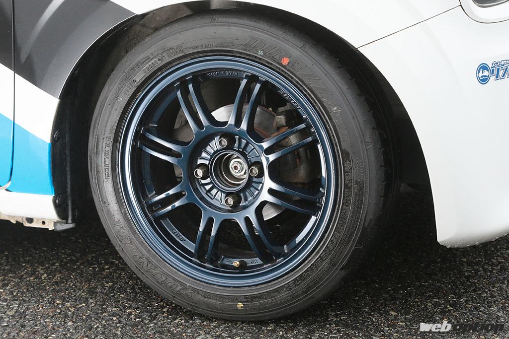 足元は鍛造1ピースのレイズAラップの2020限定版を装着。タイヤはディレッツァZIIIをチョイスし、限られたパワーを最大限に活かすグリップ力を実現している。