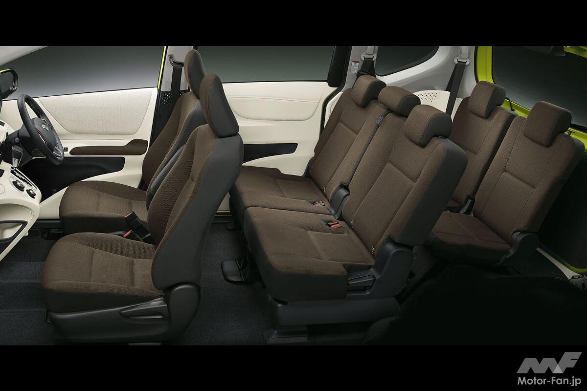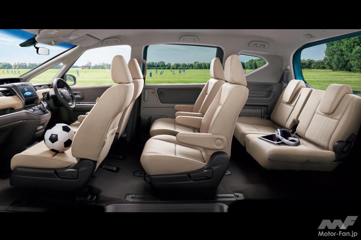 2代目フリードも基本的な使い勝手においては、現行型と大きな違いはない。6人乗り仕様は同じくキャプテンシートであり、車内のウォークスルーも可能。3列目シートの格納方法も現行型同様に左右跳ね上げ式だ。
