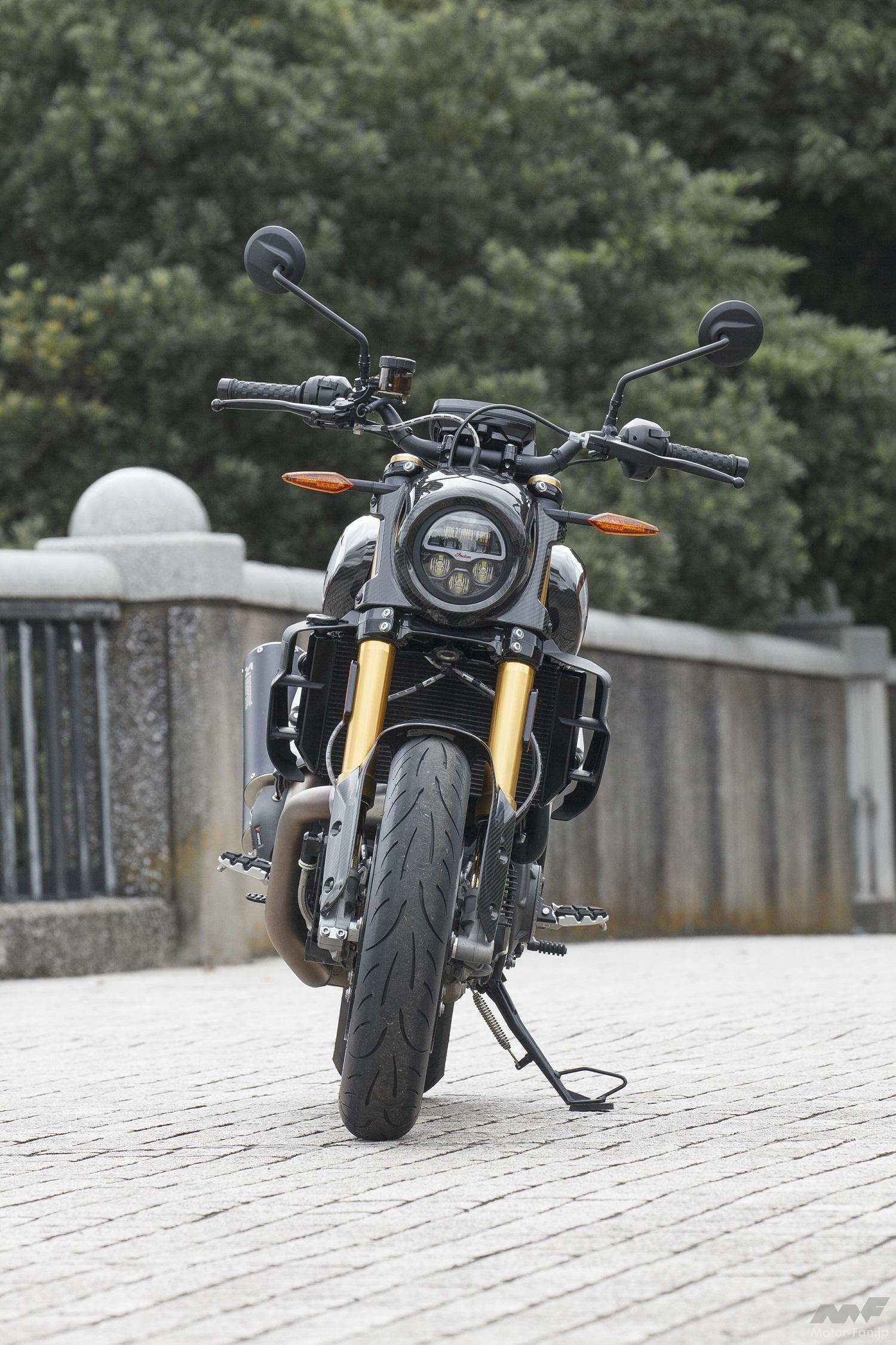 タイヤはメッツラー製SPORTEC。ブレーキはφ260mmのディスクローターにブレンボ製対向2ピストンタイプの油圧キャリパーが採用されている。