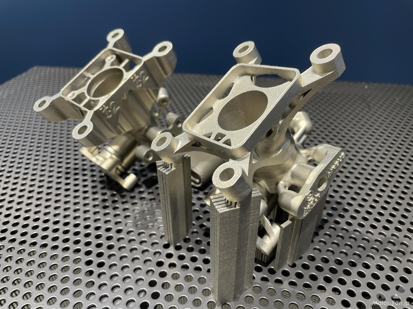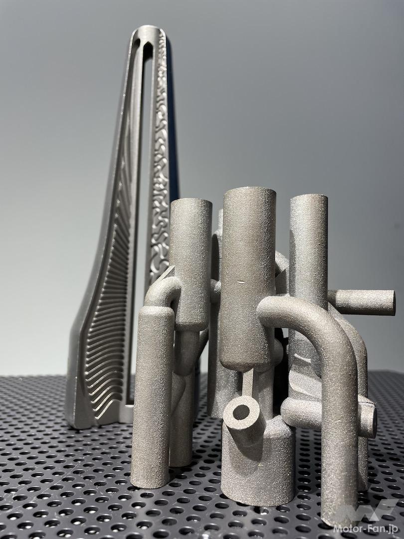 なお、現在のところパウダーは40μmを用いているが、もっと大きな粒径として印刷速度を増すことも可能。レーザーの照射速度は現在のところ一定とのこと。印刷終了後に回収したパウダーは、次の印刷のために再び使用される。パウダーの素材としてはアルミ合金、ステンレス、チタン合金などが使用可能。