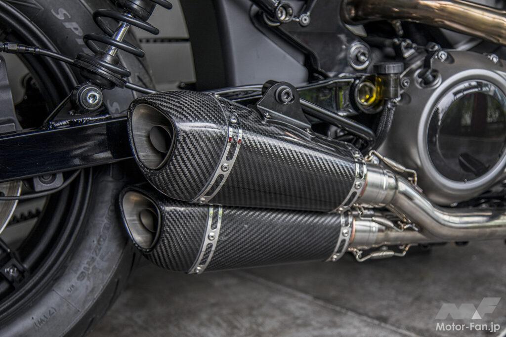 Revolution Maxはハーレーダビッドソンの次代を担う最新鋭の水冷Vツインユニット。新設計の975Tエンジンをフレームにリジッドマウントする事で高剛性軽量設計が追求されている。