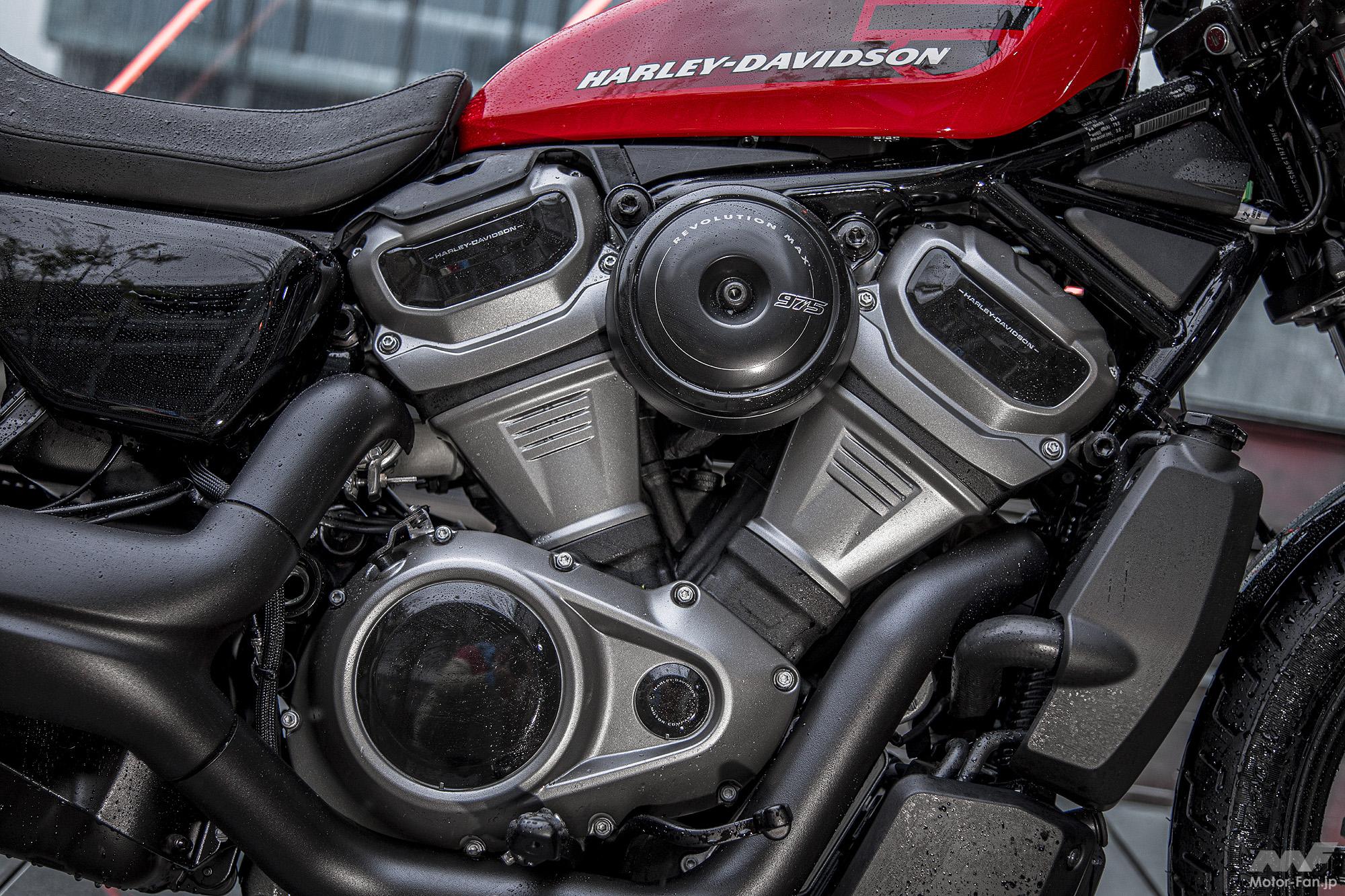 Revolution Maxはハーレーダビッドソンの次代を担う最新鋭の水冷Vツインユニット。新設計の975Tエンジンをフレームにリジッドマウントする事で高剛性軽量設計が追求されている。