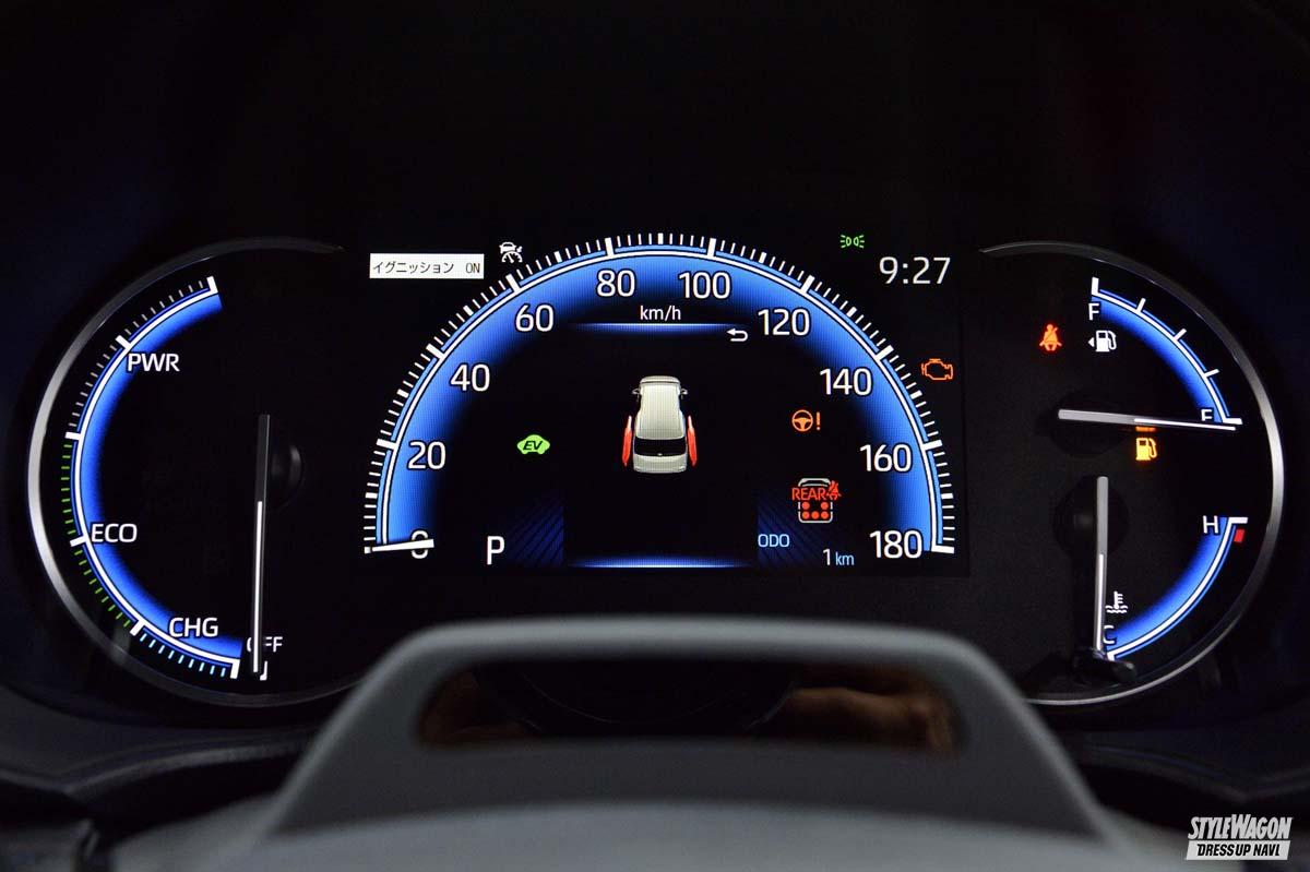 TNGAプラットフォームによるパッケージングの最適化は、室内空間の確保だけでなく、ドライバーを含めた乗員の着座位置の適正化にもつながる。ドライバーの着座位置からペダル配置、ステアリングやシフトレバーの配置などが、それぞれ最適になるようレイアウトされているのだ。ダッシュボードは水平基調で、アッパー部とロア部の2段トレー形状とすることで、前方視界特性を向上させながら、くつろぎの感じられる空間を作り出している。トレー先端が低く、さらにダブルAピラーとすることでピラー周囲の死角を低減させ、高い視認性を実現した。ピラー内装をブラックとすることで、ピラーが細く見える効果もあるのは絶妙だ。2段トレーの中央部にディスプレイオーディオを配置し、コンソール上段にエアコン操作部、シフトまわりに機能スイッチを配置するなど、エリア分けが明確に行われているのも特徴となる。エアコンルーバーは中央部を薄型に、左右サイド部をタテ型とすることで、ダッシュボード全体をすっきりとしたイメージに作り上げている。シンプルながらプレミアム性も感じられるインテリアと言えるだろう。