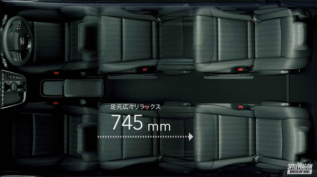 2列目シートのロングスライド機構が先代のノア&ヴォクシーでは好評だったが、新型ではさらに使い勝手が向上している。リクライニング機構のメカニズムをシートに内蔵することによりシート幅を抑え、さらに3列目シートのチップアップ時の張り出しを小さくしている。これにより、従来はシートを中心に寄せて(横スライド)から縦にスライドさせていたものをワンアクションで調整できるようになった。キャプテンシートでは745㎜、ベンチシートでも705㎜という「ストレート超ロングスライド」を実現。アレンジのバリエーションが拡大した。