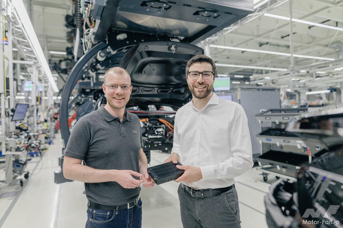 テクノロジー アウディ、ドイツ・ベーリンガーホフ拠点の組立ラインにローカルサーバー「EC4P」を導入【写真・2枚目】 “Our motto is software, not hardware”: Sven Müller and Philip Saalmann, Head and Co-head of the Edge Cloud 4 Production project team. Starting in July 2023, Audi integrates Ede Cloud 4 Production into series production following a test run in operation and preliminary testing. この画像の記事を読む
