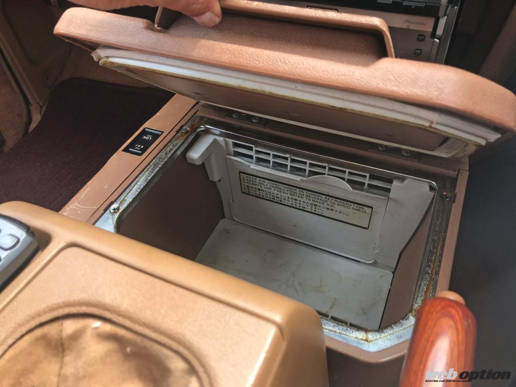 エアコン装着車にオプション設定された小型冷蔵庫。世界初の製氷機能付きというのが大きなウリだったりする。また、スイッチ切り替えによって温蔵庫として使うことも可能だ。