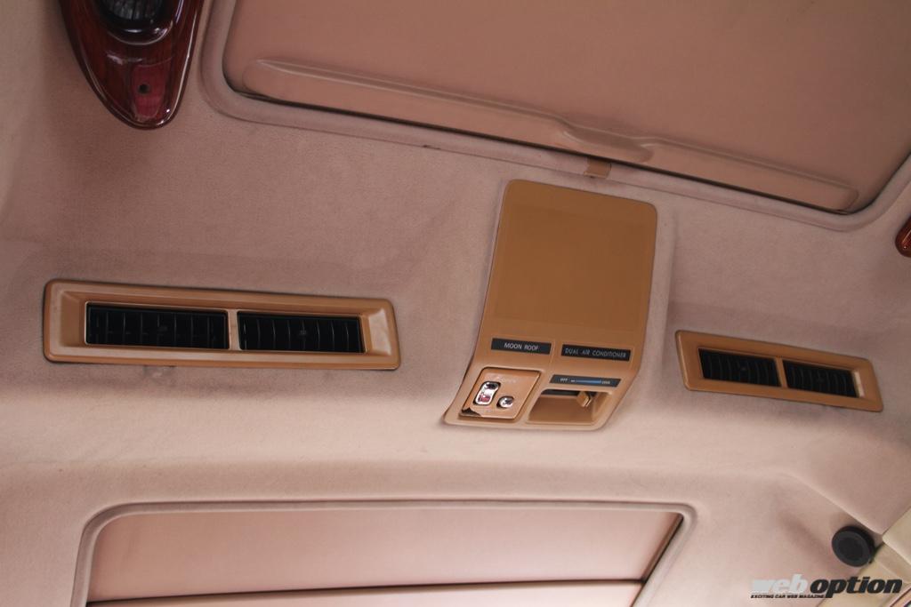 1~2列目の頭上にはオプション設定のデュアルエアコン&電動スライドルーフ操作スイッチの他、、エアコンの吹き出し口が設けられる。また、後席用エアコンの温度や風量調整などは2列目右側に用意された操作パネルで行なう。