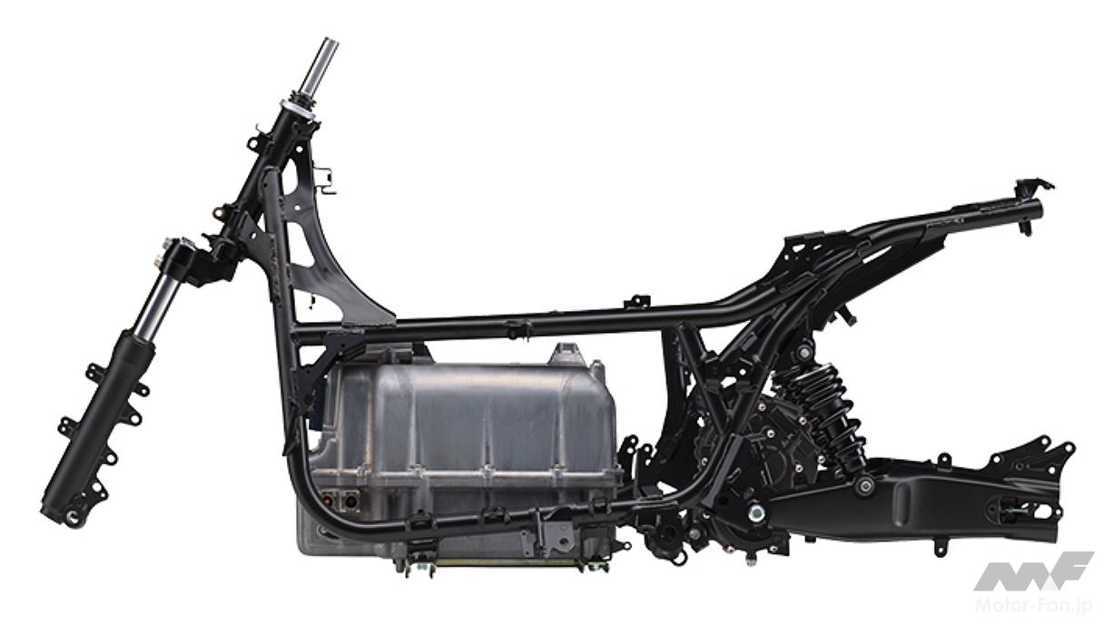 後輪はベルトドライブ式。CVTのないスッキリと軽快なデザインが印象深い。