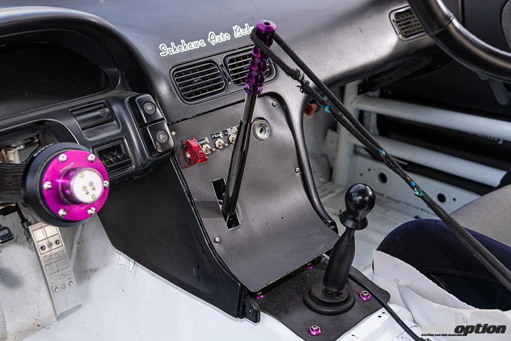 ベースは国内仕様のS13シルビアだが、240SXのステアリングラックとダッシュボードを使って左ハンドル化しているのも特徴のひとつ。オーナーはブラジルで育った人物。それだけに、運転のしやすさを考えると左ハンドル化はかなり重要な項目だったという。