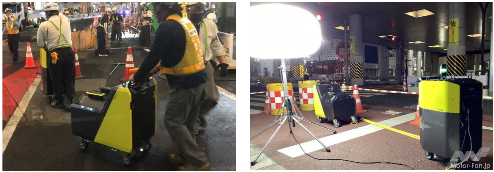 夜間工事の現場では、照明や警告板などの電気設備の利用のために電源が必要となるが、通電していないケースが多く、一般的に軽油やガソリンを使用する発電機が用いられている。しかし、軽油・ガソリン発電機はCO₂の排出をはじめ、騒音、振動、臭気などの問題があり、周辺環境に支障をきたすため、その改善が課題となっている。
