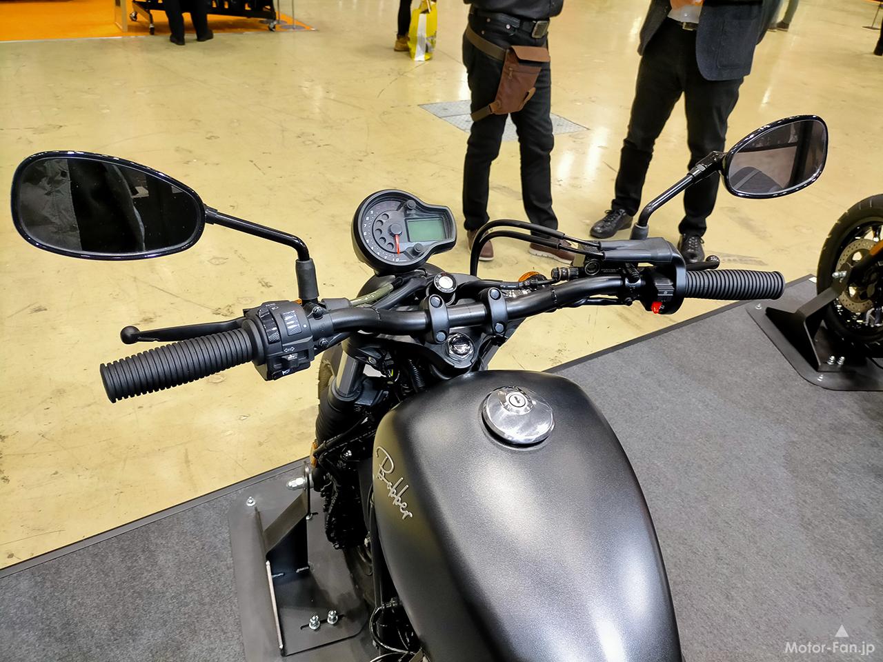 ティアドロップタンクはサイズ感を抑えたスリムなデザインながら、12.5Lの十分な容量を確保。Bobberの3Dエンブレムを配置し、存在感を引き上げているのもポイント。300のロゴ入りエアクリーナーボックスは、排気量に合わせて容量をアップしている。