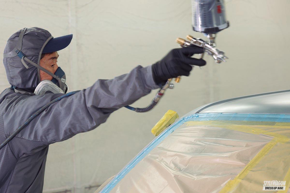 このプロジェクトの核となるのがこのオールペンだ。仕上がりに差が出ることが多いクルマの塗装は、やはり熟練の職人さんにやってもらいたいと、百戦錬磨のプロショップ「ジェットストローク」にて施工。
