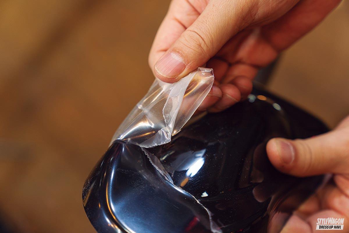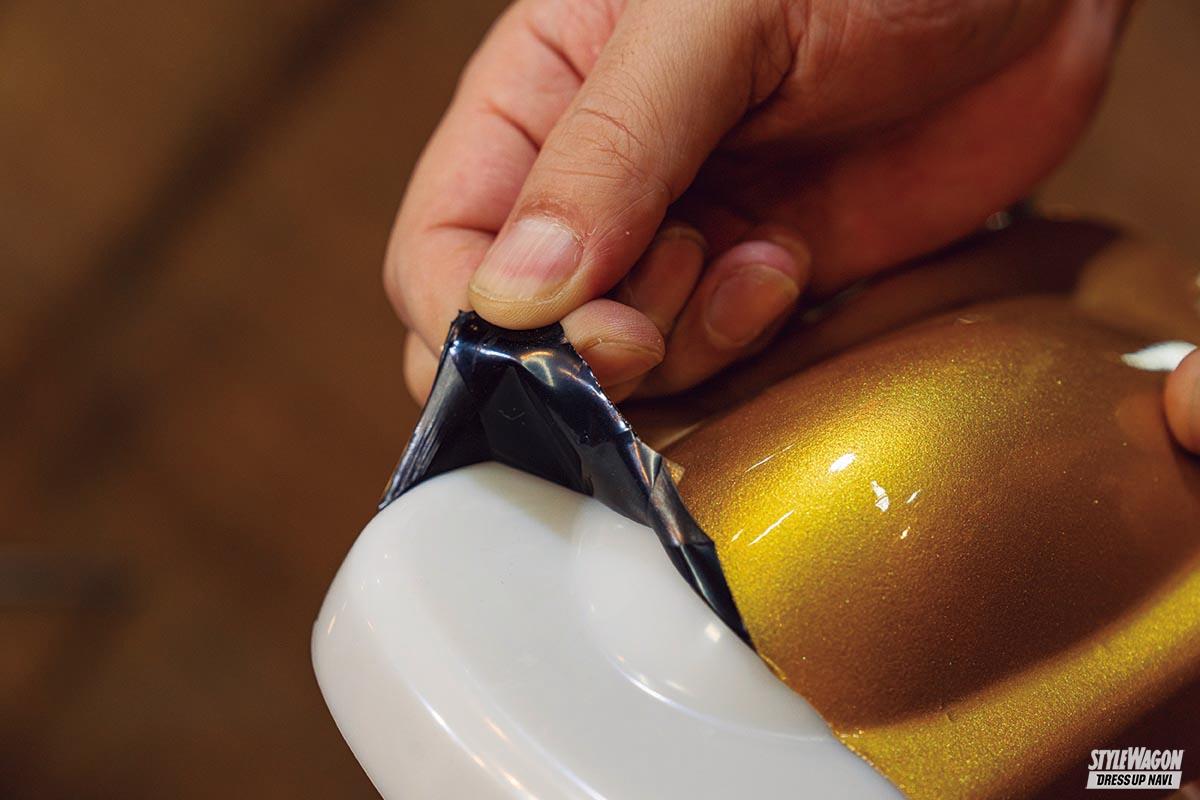 今回の全塗装作業は、クオリティにこだわるジェットストロークではあまりやらない「ガワ塗り」という方法で着手。基本的にははずせる純正部品はすべてはずし、細部までキレイに仕上げるが、「ガワ塗り」はなるべく部品をはずさないでマスキングで処理して塗装する。