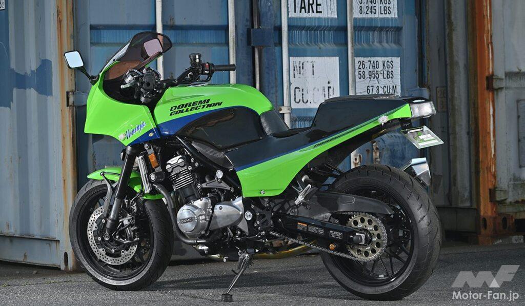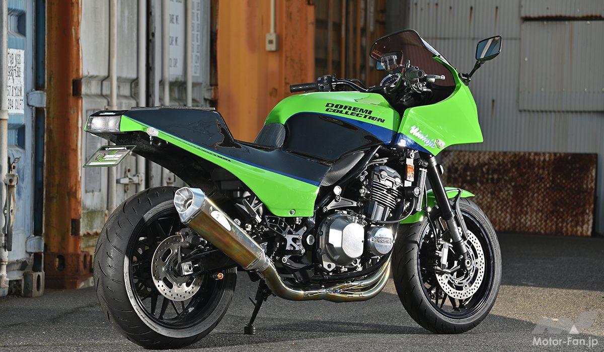 人気のレトロスポーツ・カワサキZ900RSをベースに、“初代Ninja(ニンジャ)”としてもおなじみの伝説のモデル「カワサキGPZ900R」を現代に蘇らせた、ドレミコレクションの「Z900RS GPZ900R Ninja Style」。戦闘機をイメージさせる、グラマラスでシャープなフロントマスクなど、世界中で爆発的な人気を誇ったGPZ900Rのフォルムを見事に再現している。